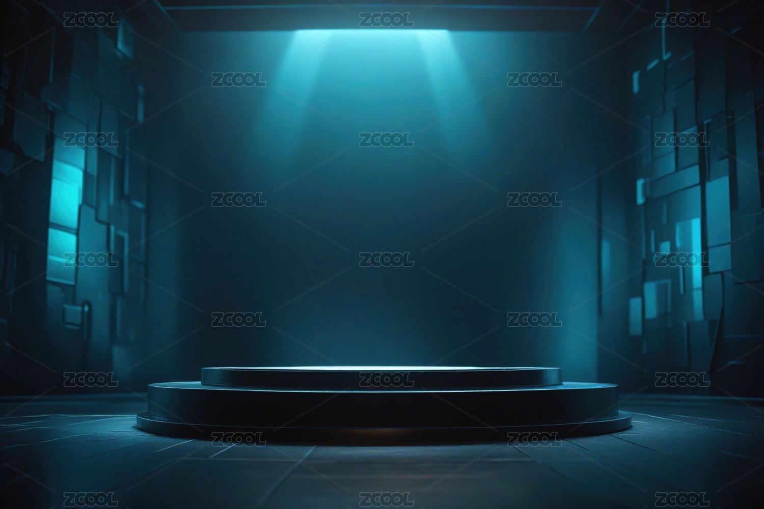 蓝色聚光灯下的圆形舞台背景