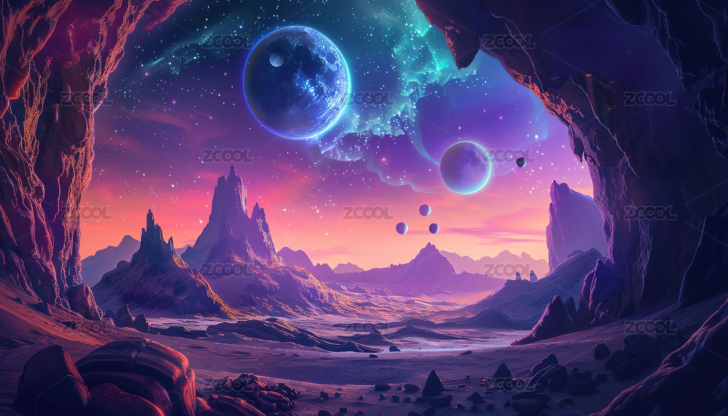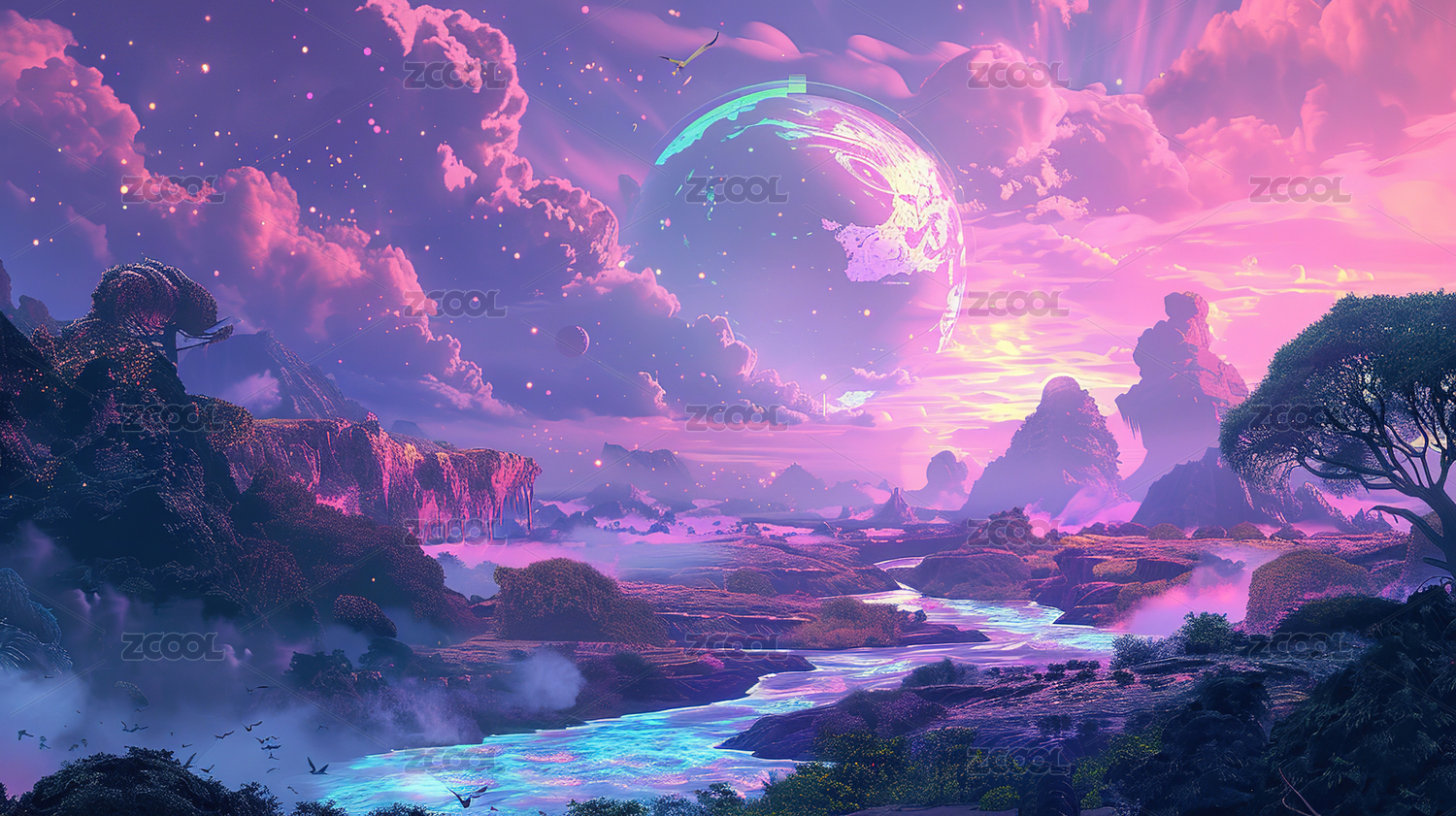 场景,科幻场景,游戏原画,原画场景,影视场景概念设计,影视美术,风景,傍晚,外星球,绘画