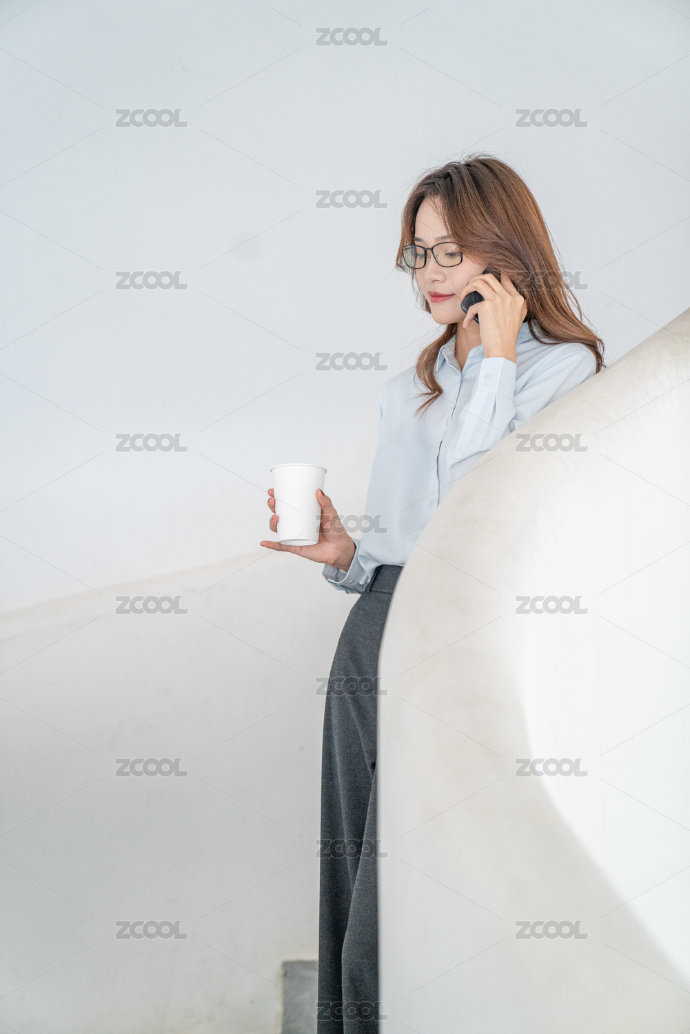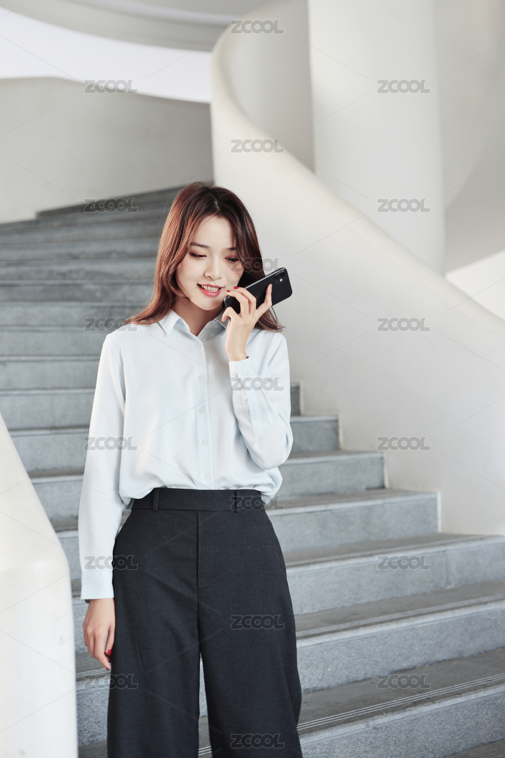 一个走楼梯的商务女生