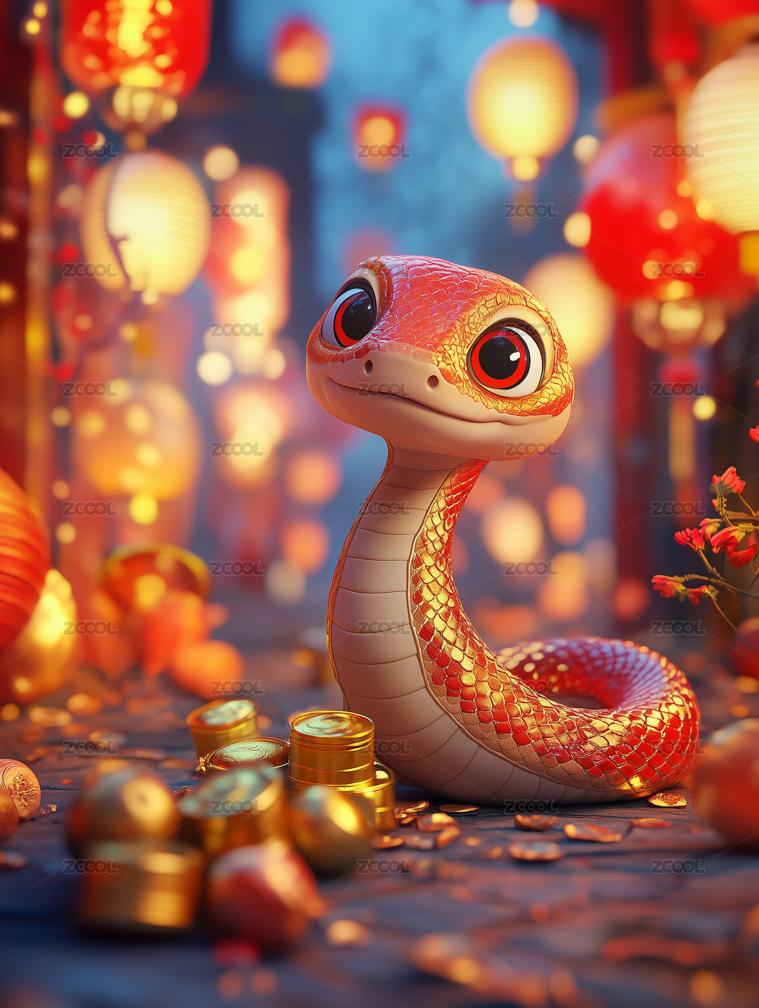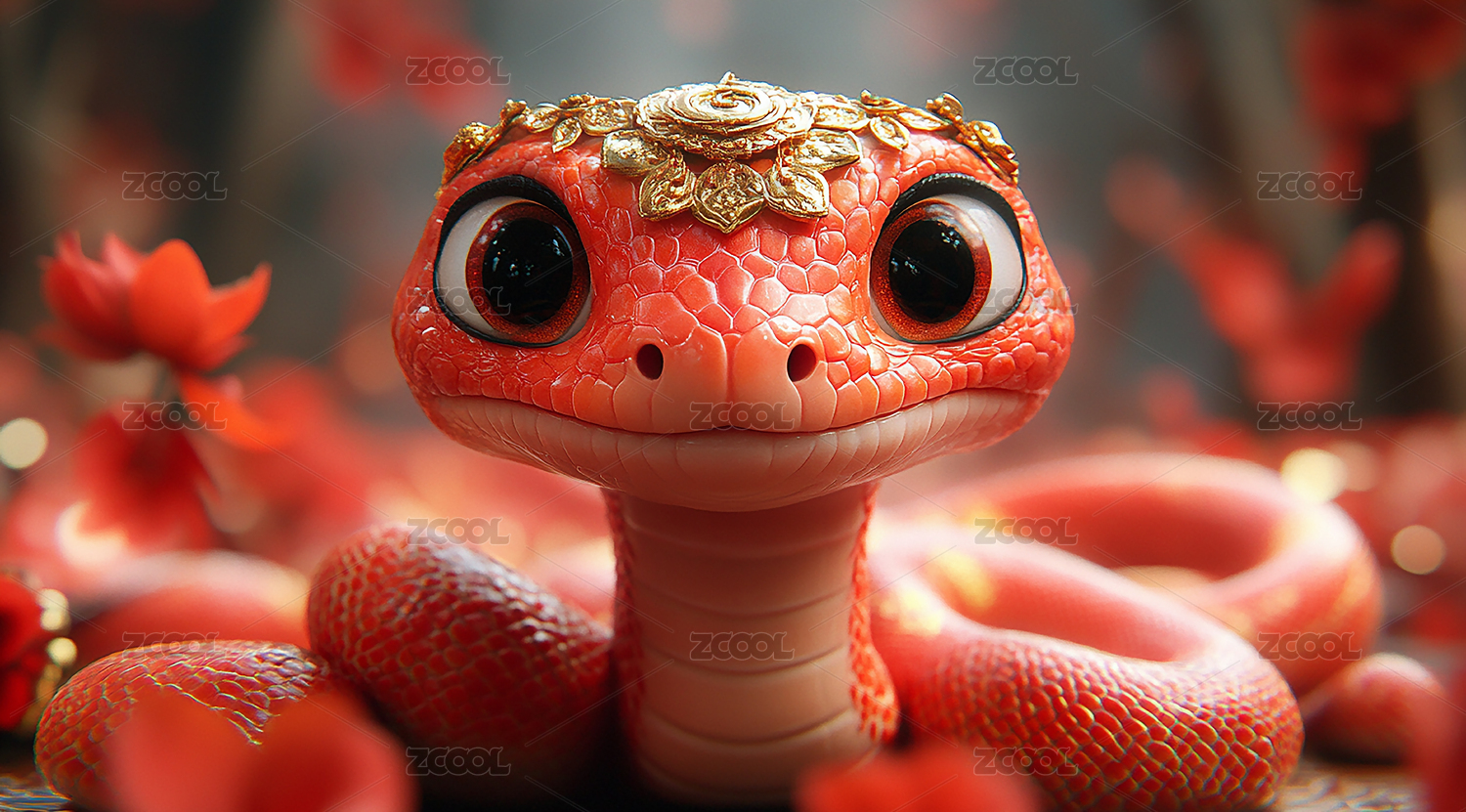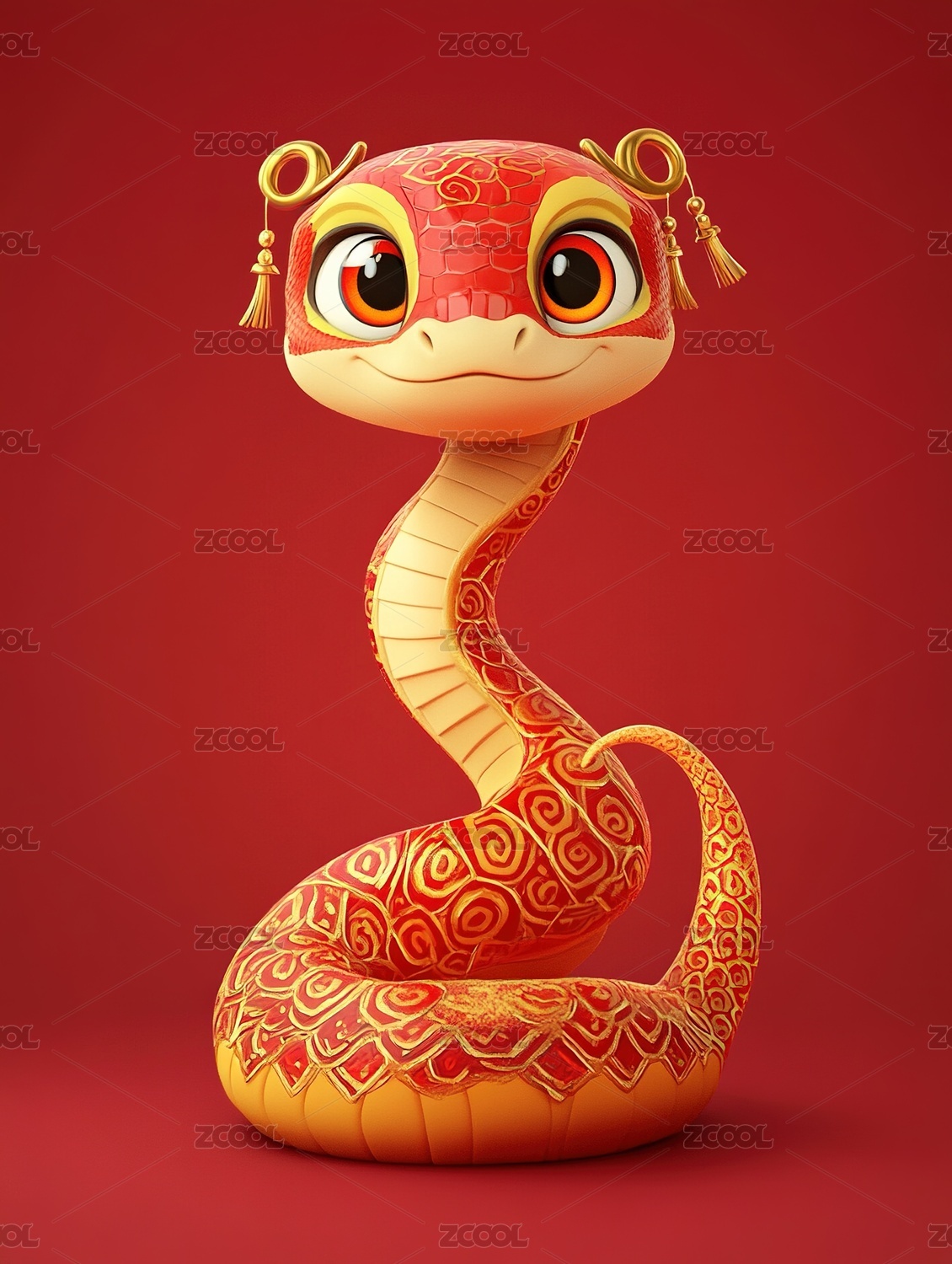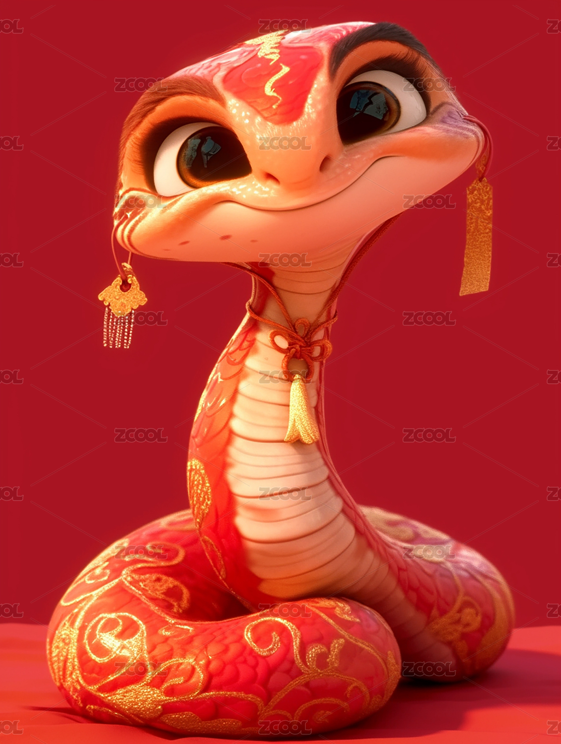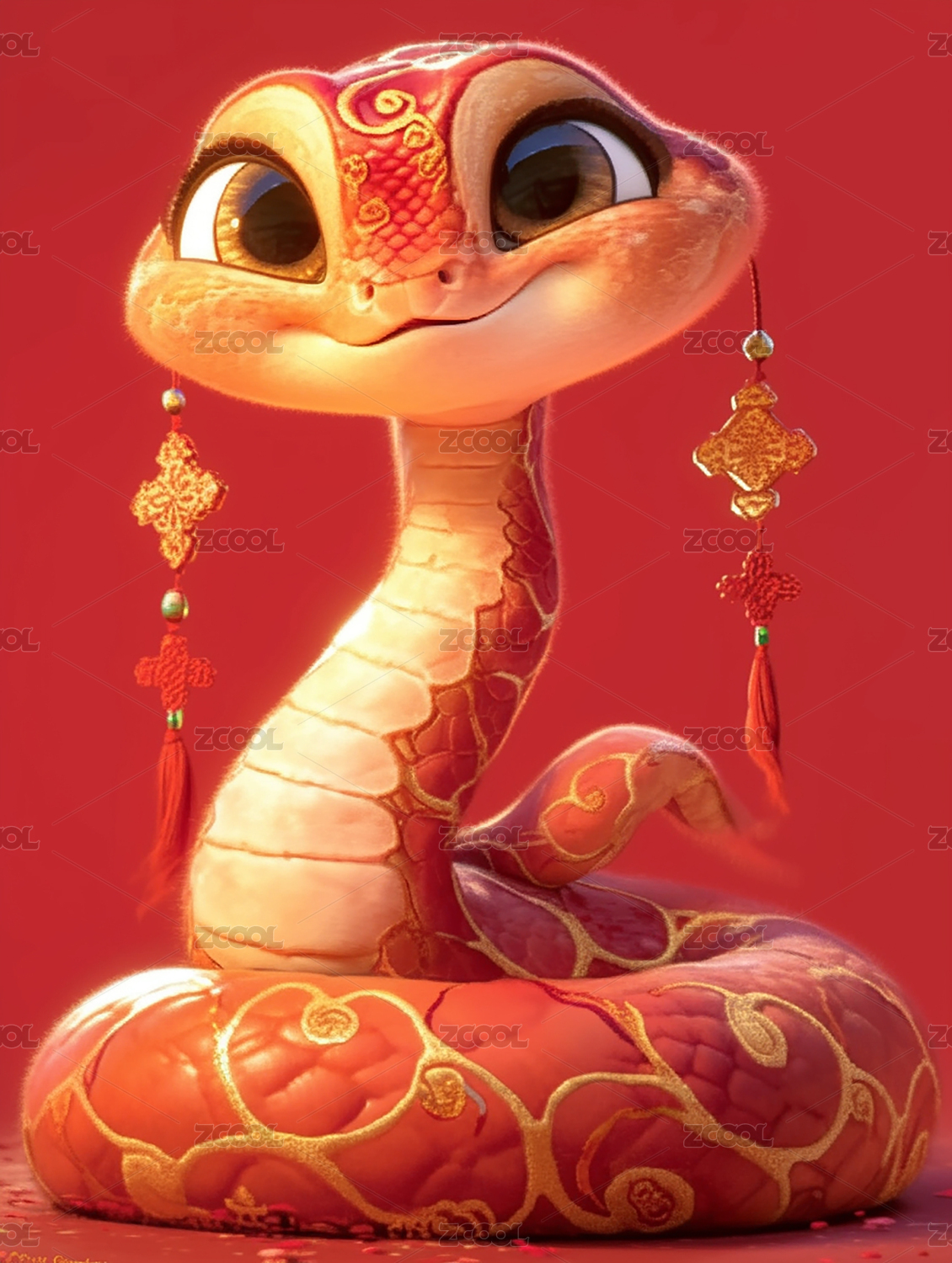 中国蛇年,中国红,中国蛇,过年,喜庆,氛围,红色,可爱,卡通蛇