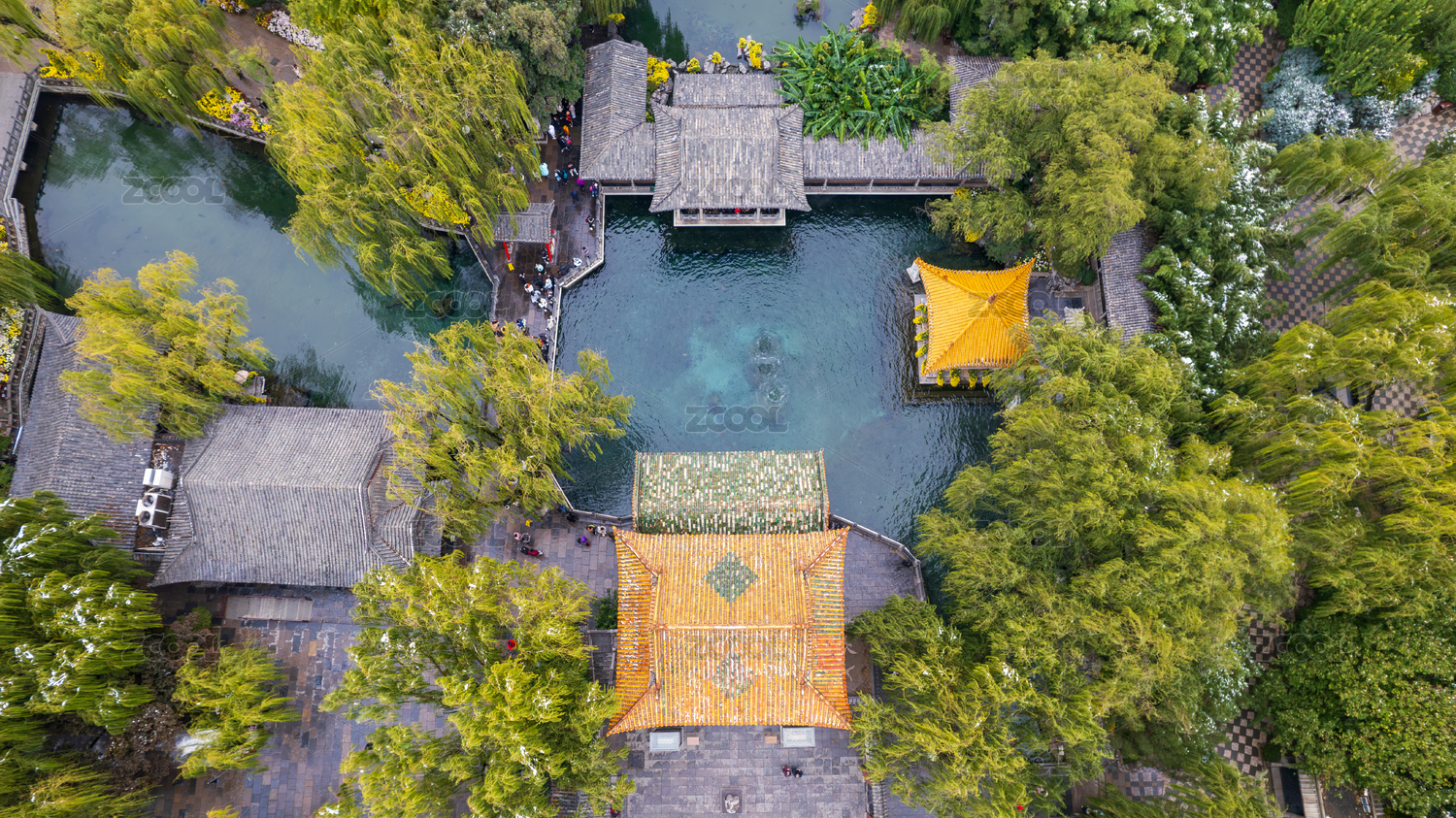 中国山东济南趵突泉俯视角航拍图