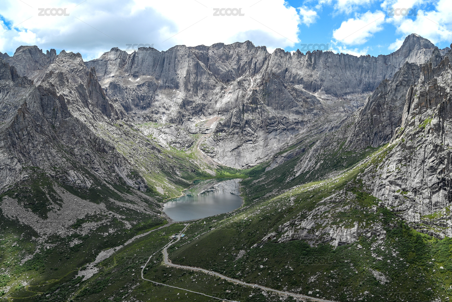 甘南洛克之路险峻奇绝山脉峡谷绿色草地