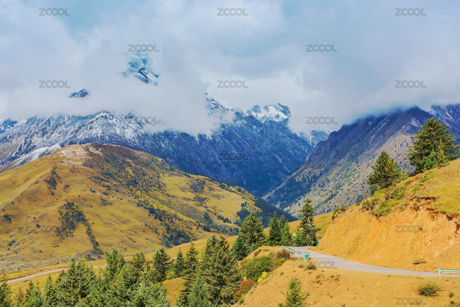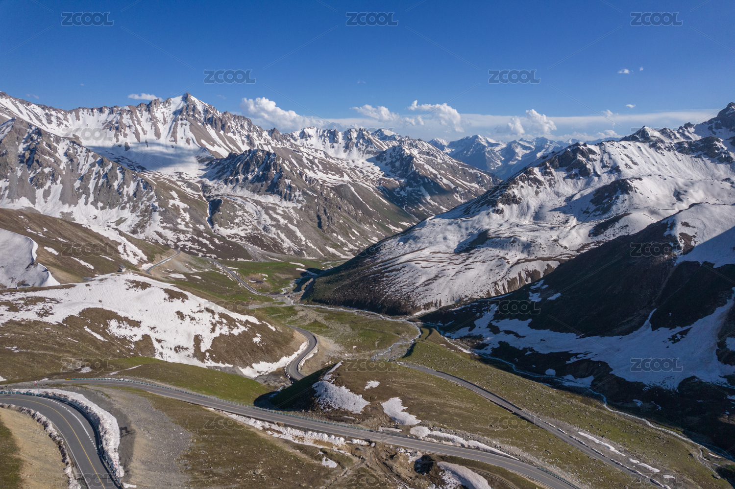 中国新疆独库公路边的雪山