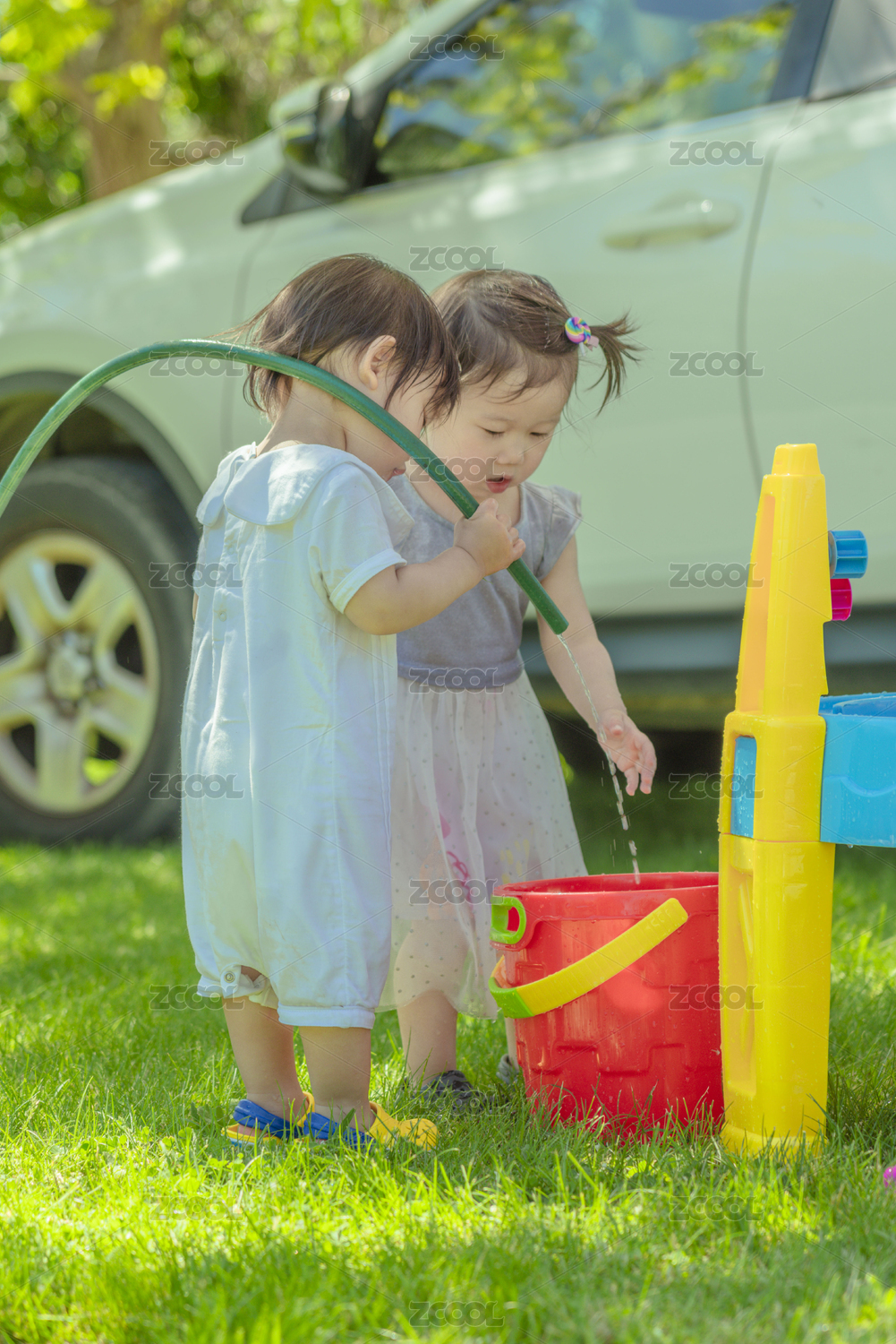 取水,水龙头,给水站,男孩,幼儿,水桶,草坪,游戏,玩具,分类玩具