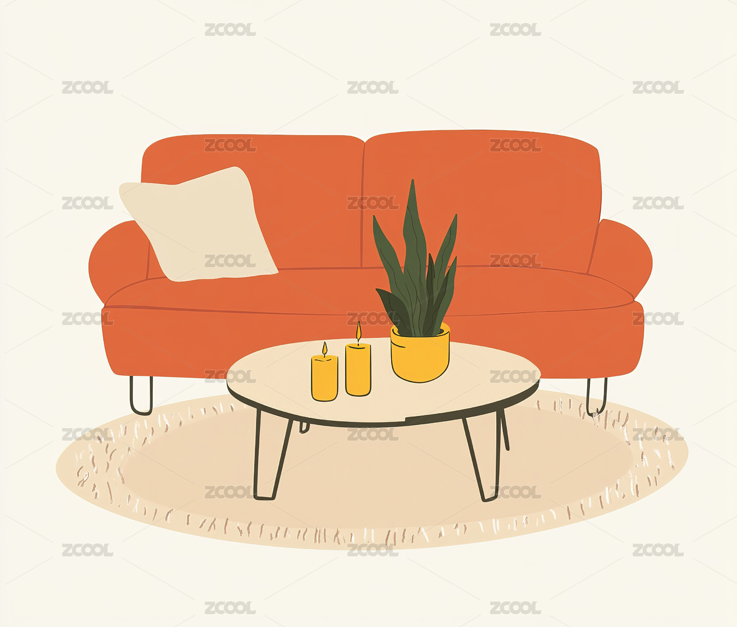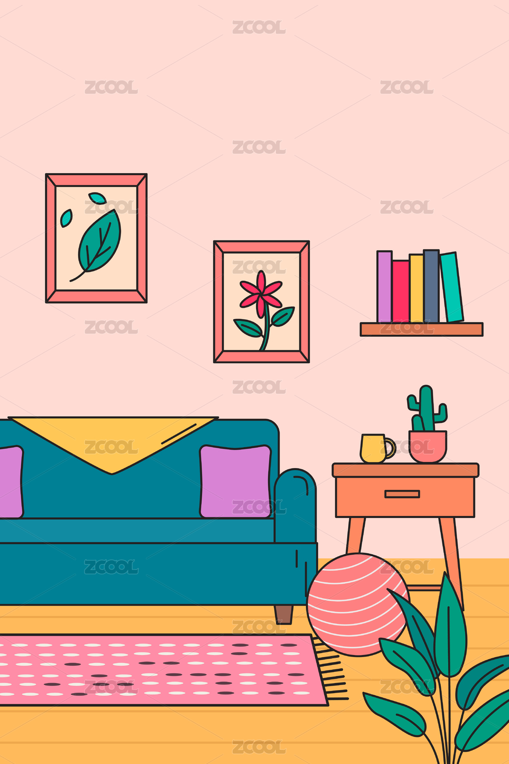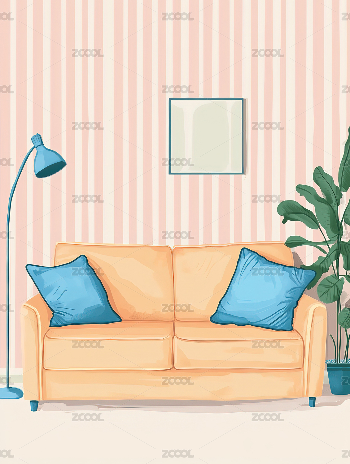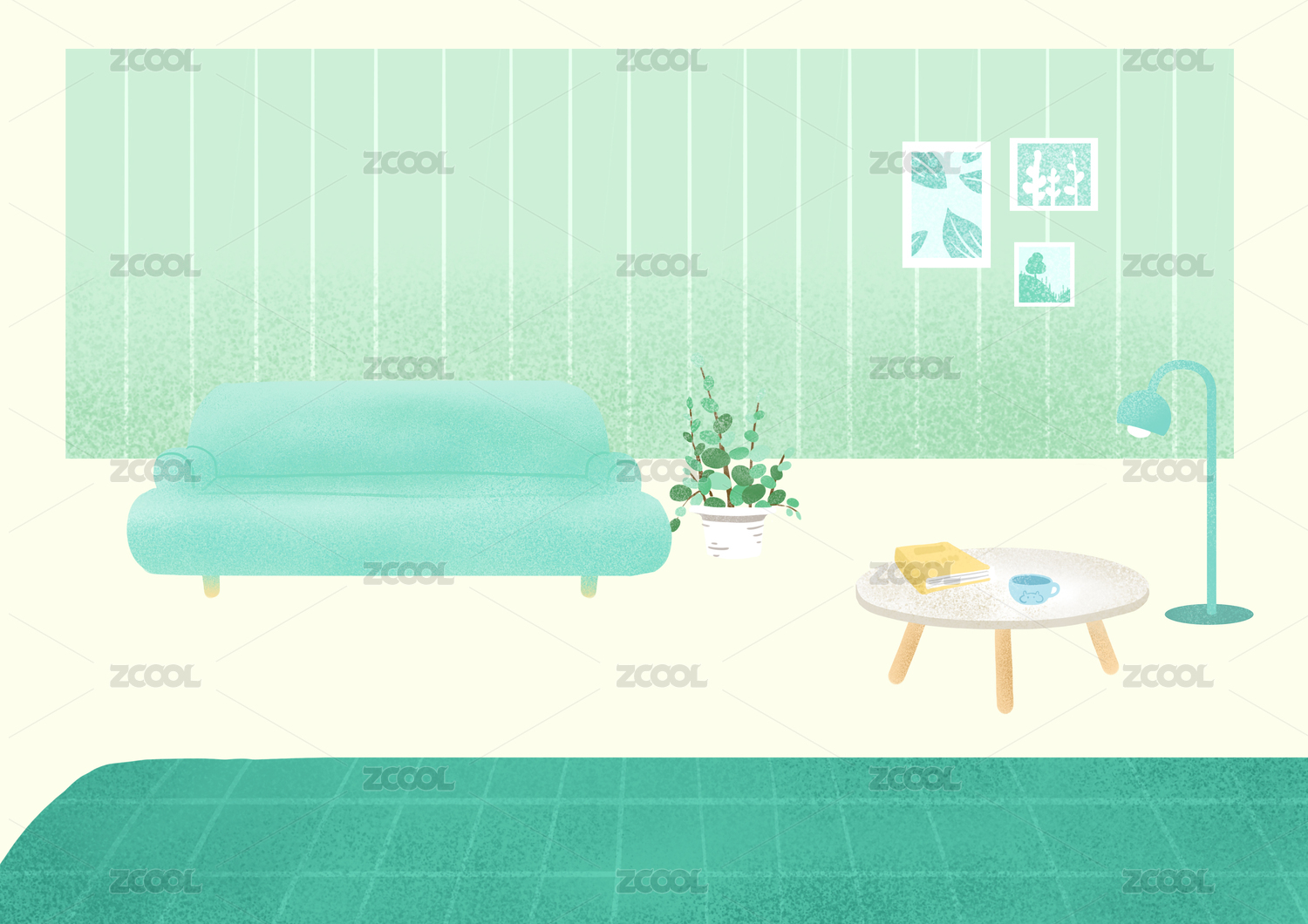 插图,配图,家居,室内,清新,北欧,沙发,地毯,植物,装饰画