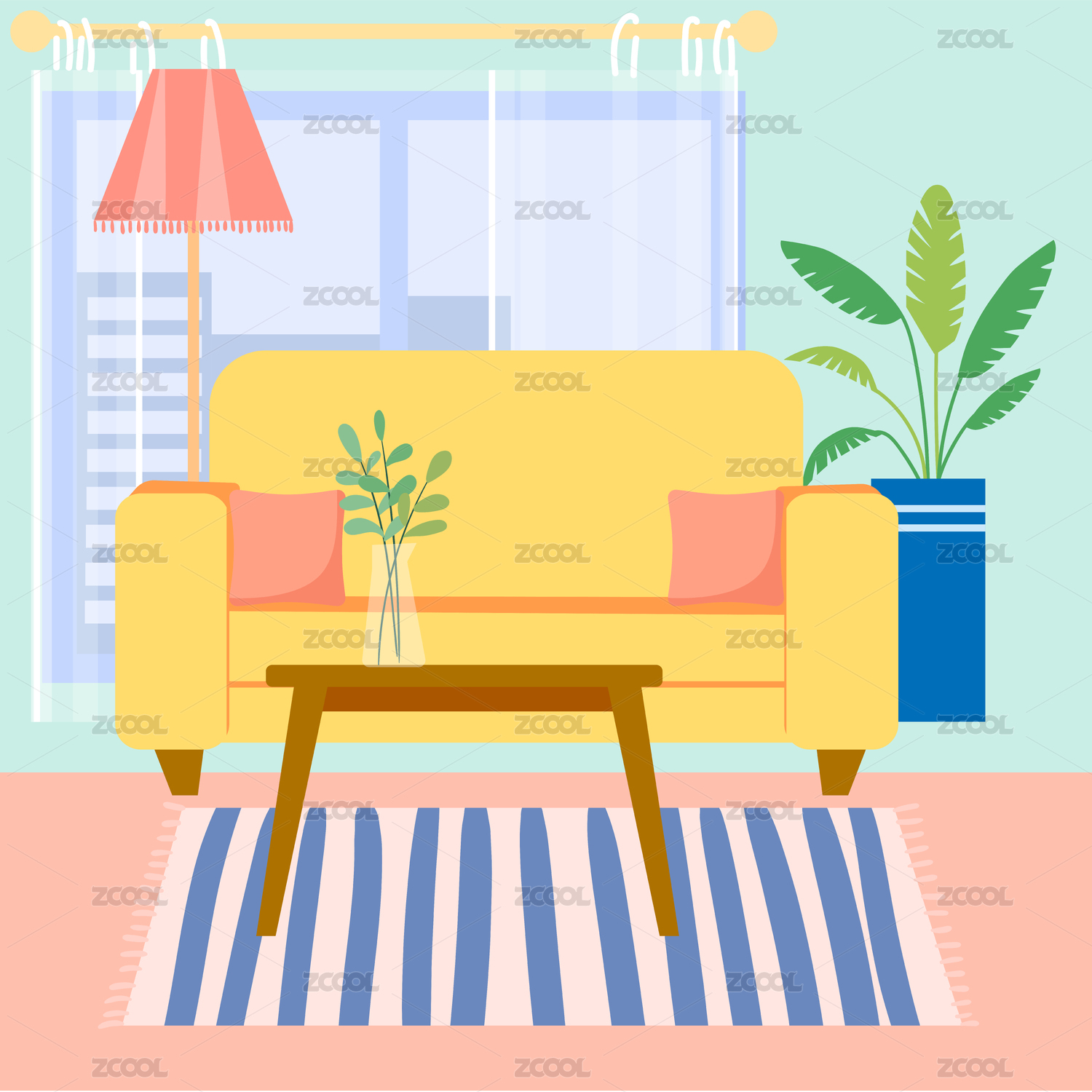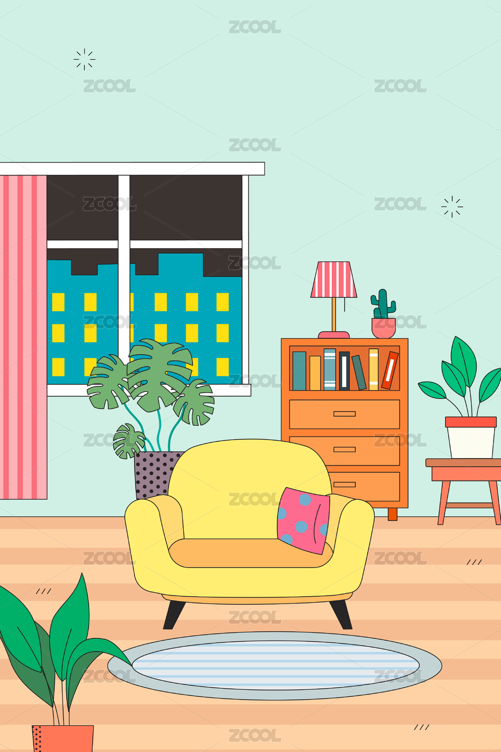 室内家居场景矢量插画