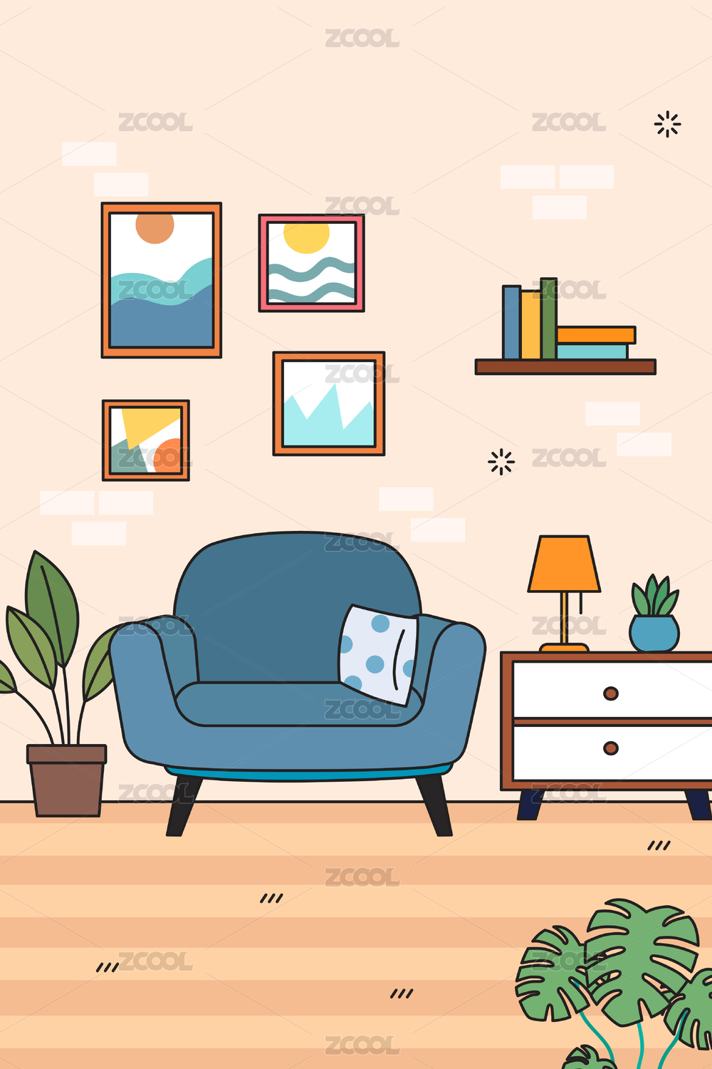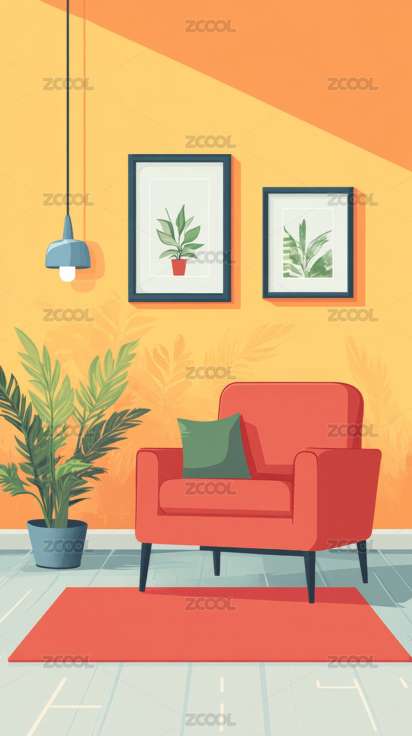 客厅室内家居插画
