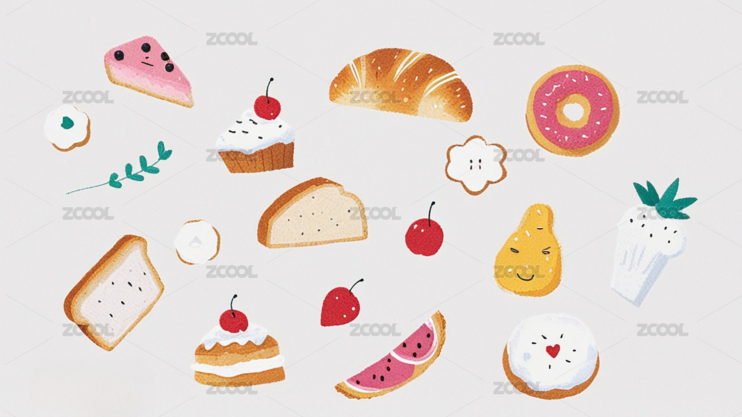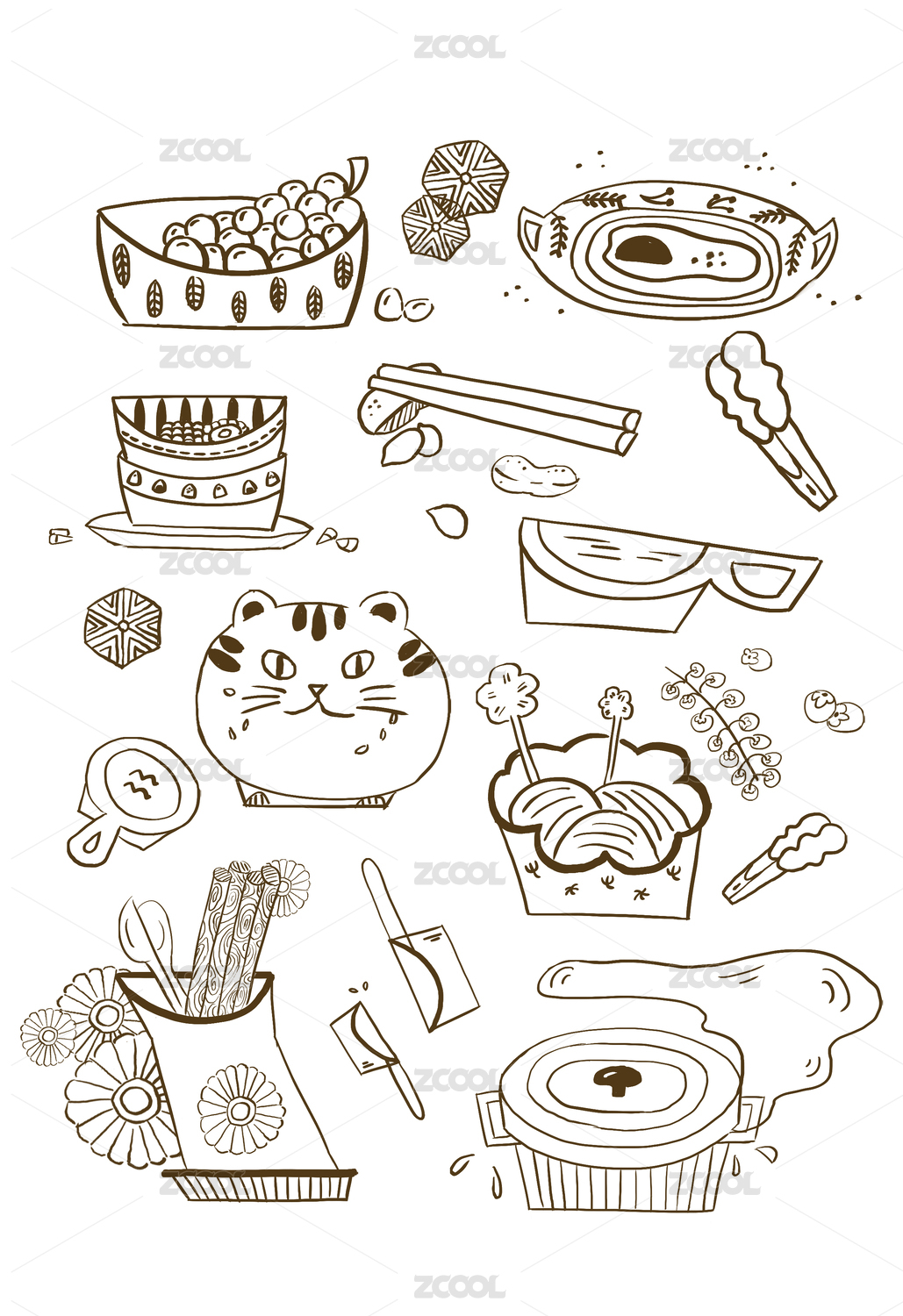 美味食品美食餐饮图形描边涂鸦扁平插画