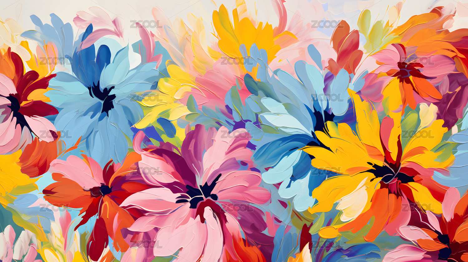 鲜艳的色彩抽象油画花朵艺术感装饰背景