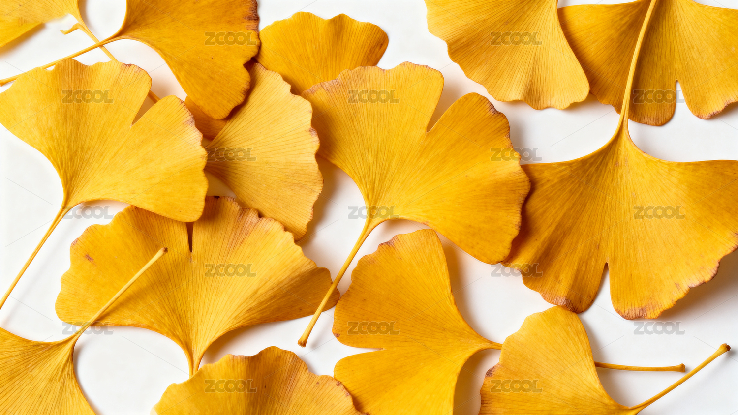白色背景上黄色银杏叶满画幅