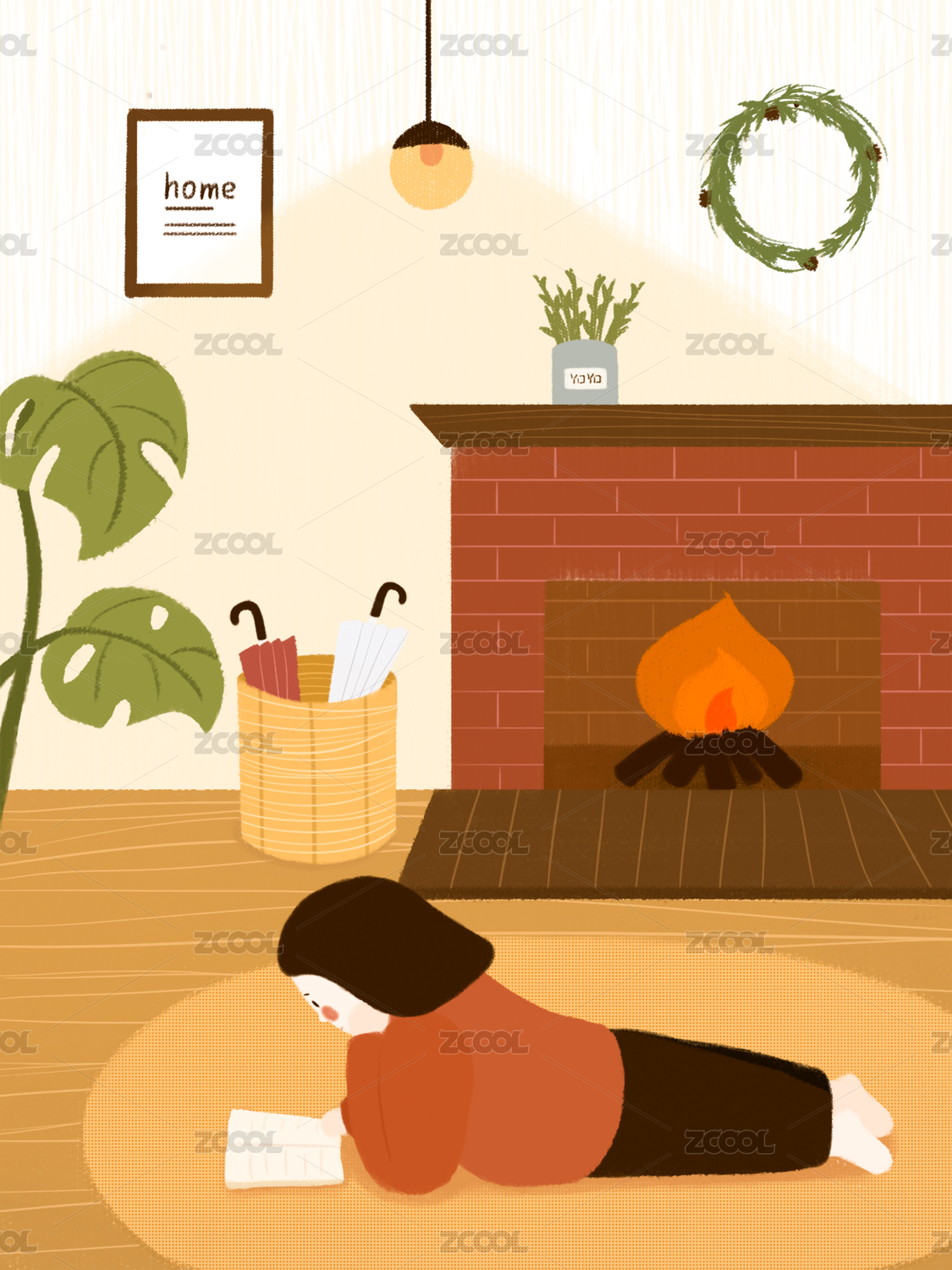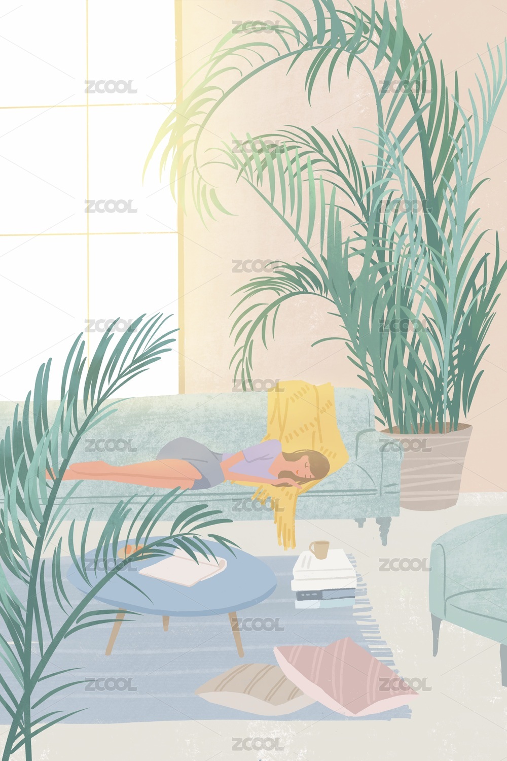 午后女孩躺在客厅沙发上看书 喝下午茶
