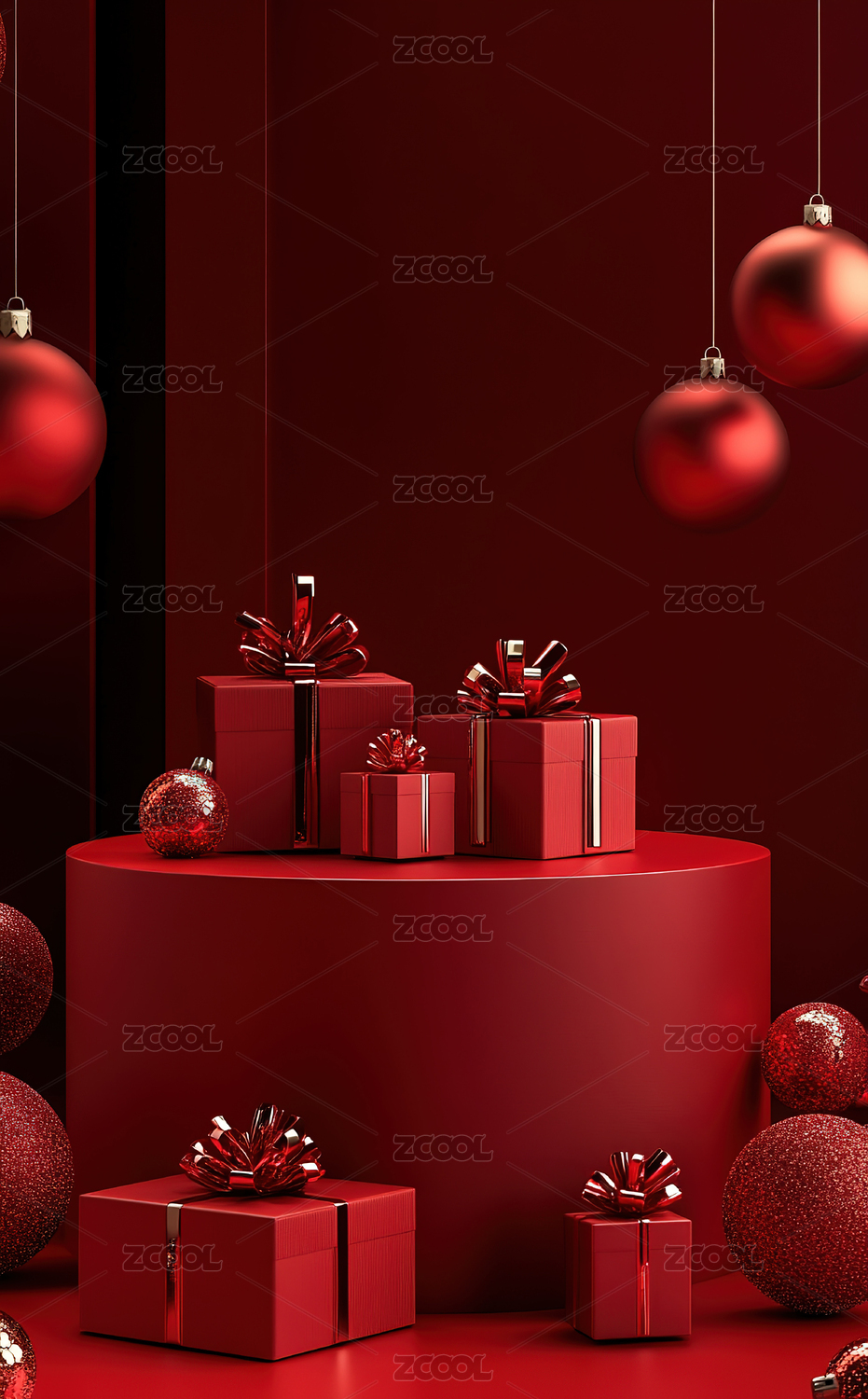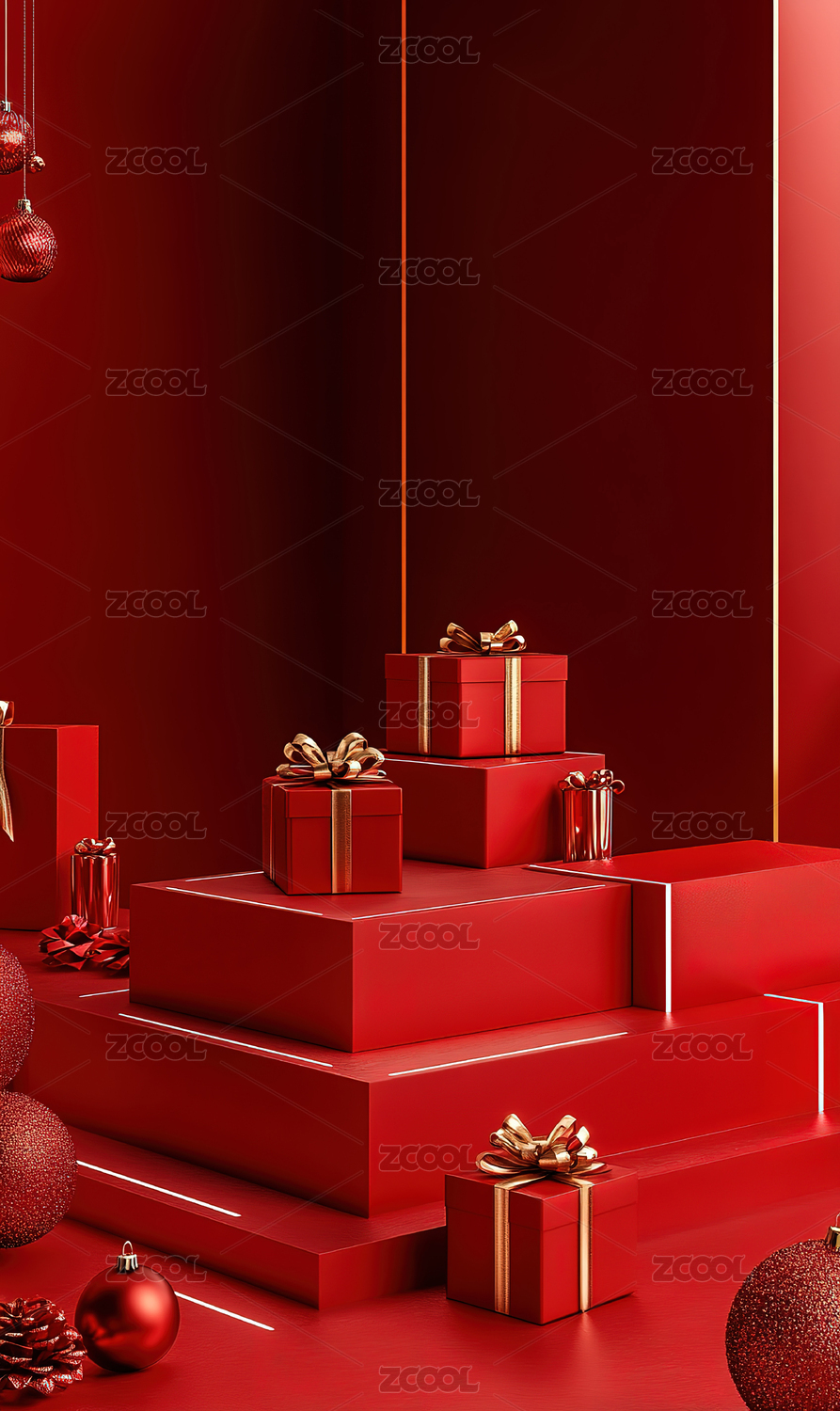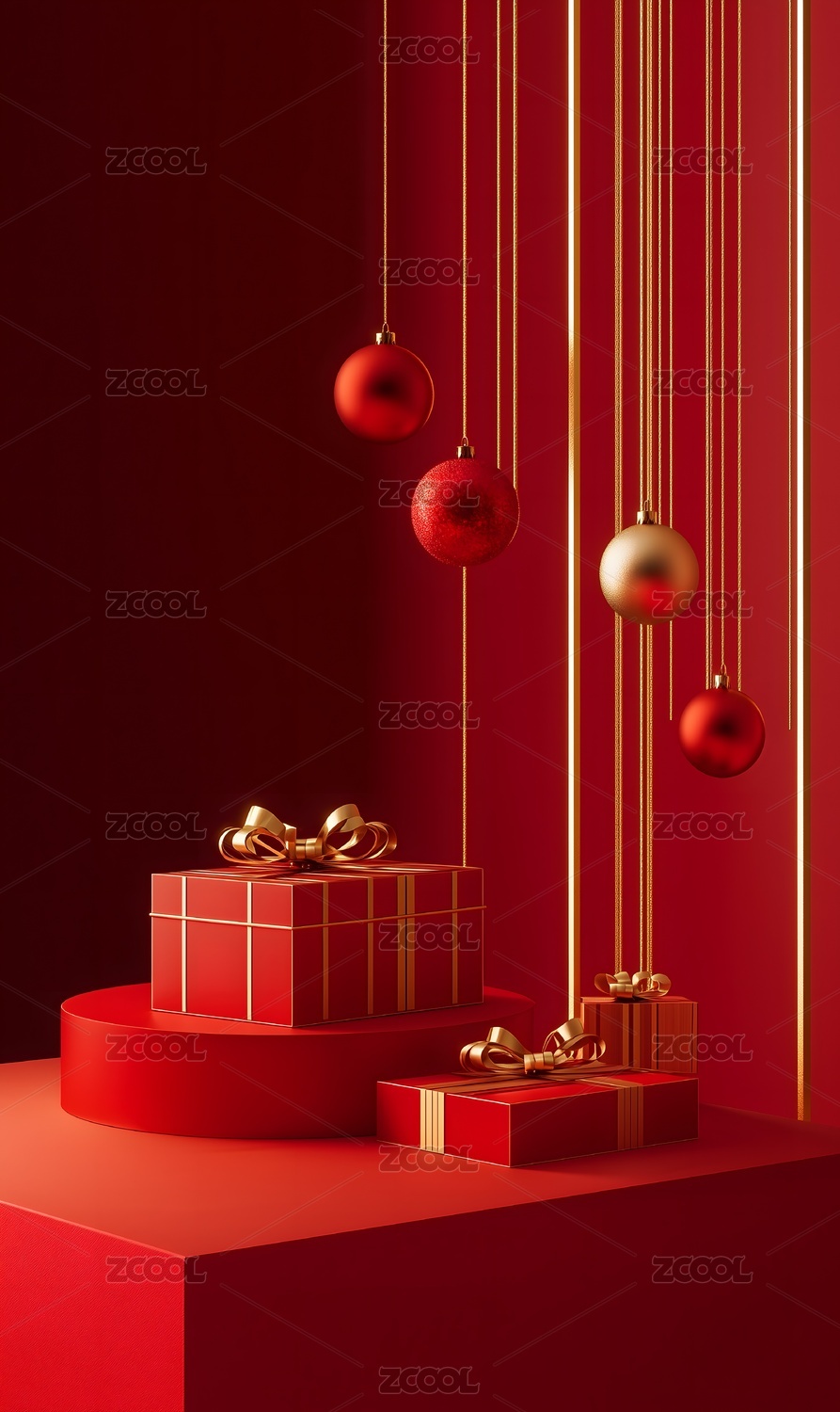 AIGCTP2024,新年,圣诞节,购物,场景,红色,金色,纸质,简约,发光