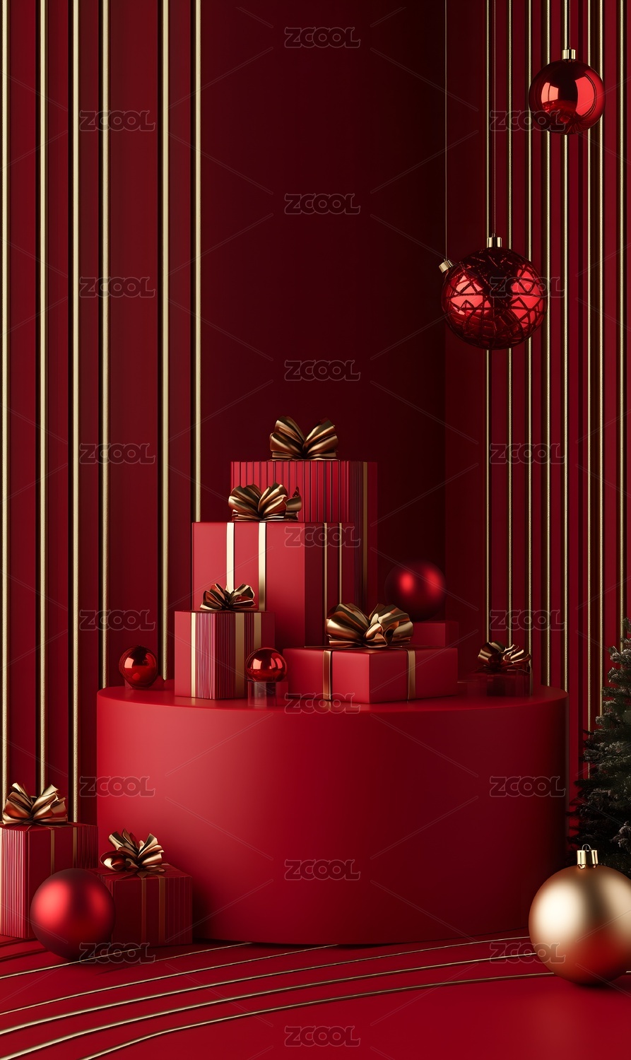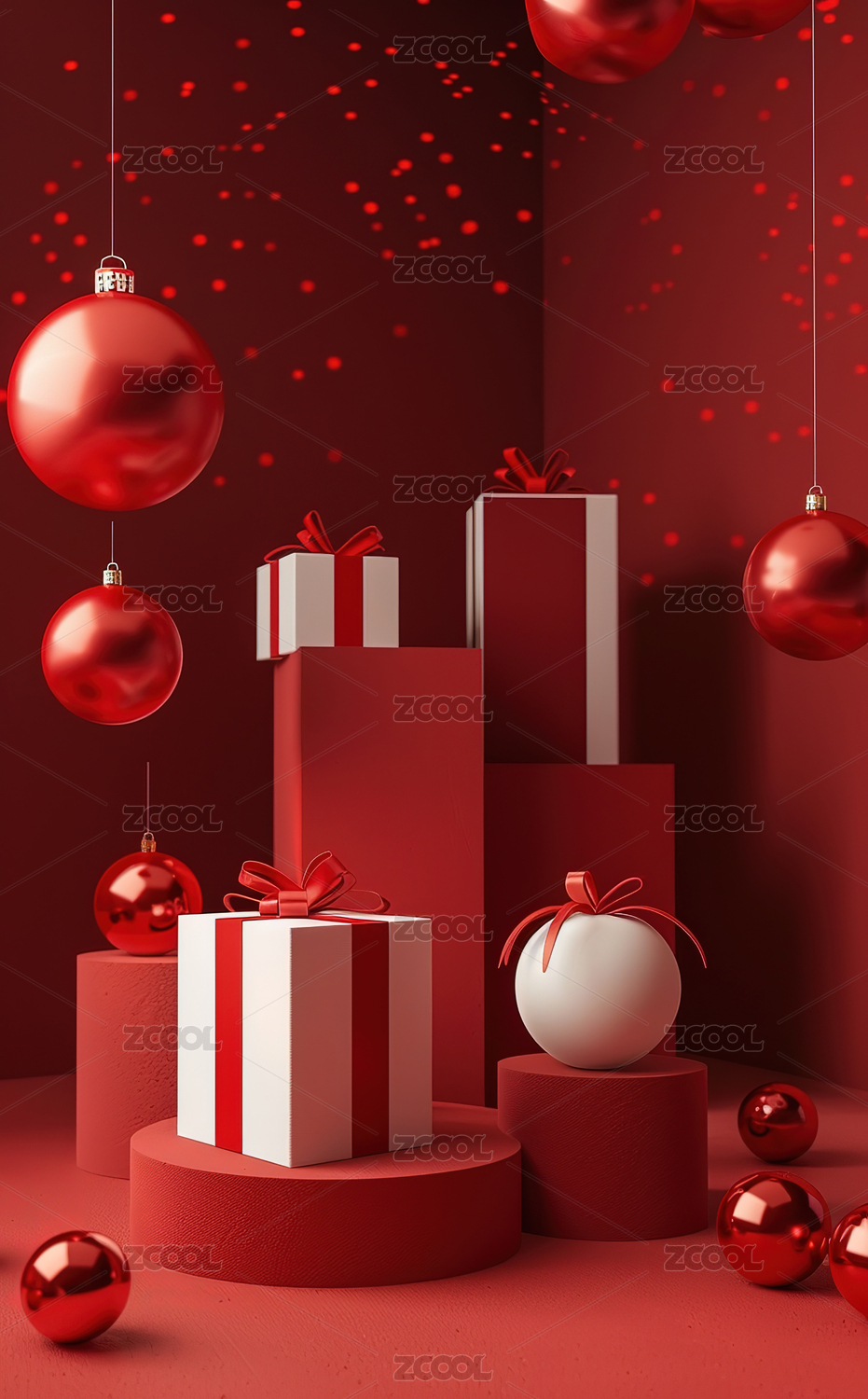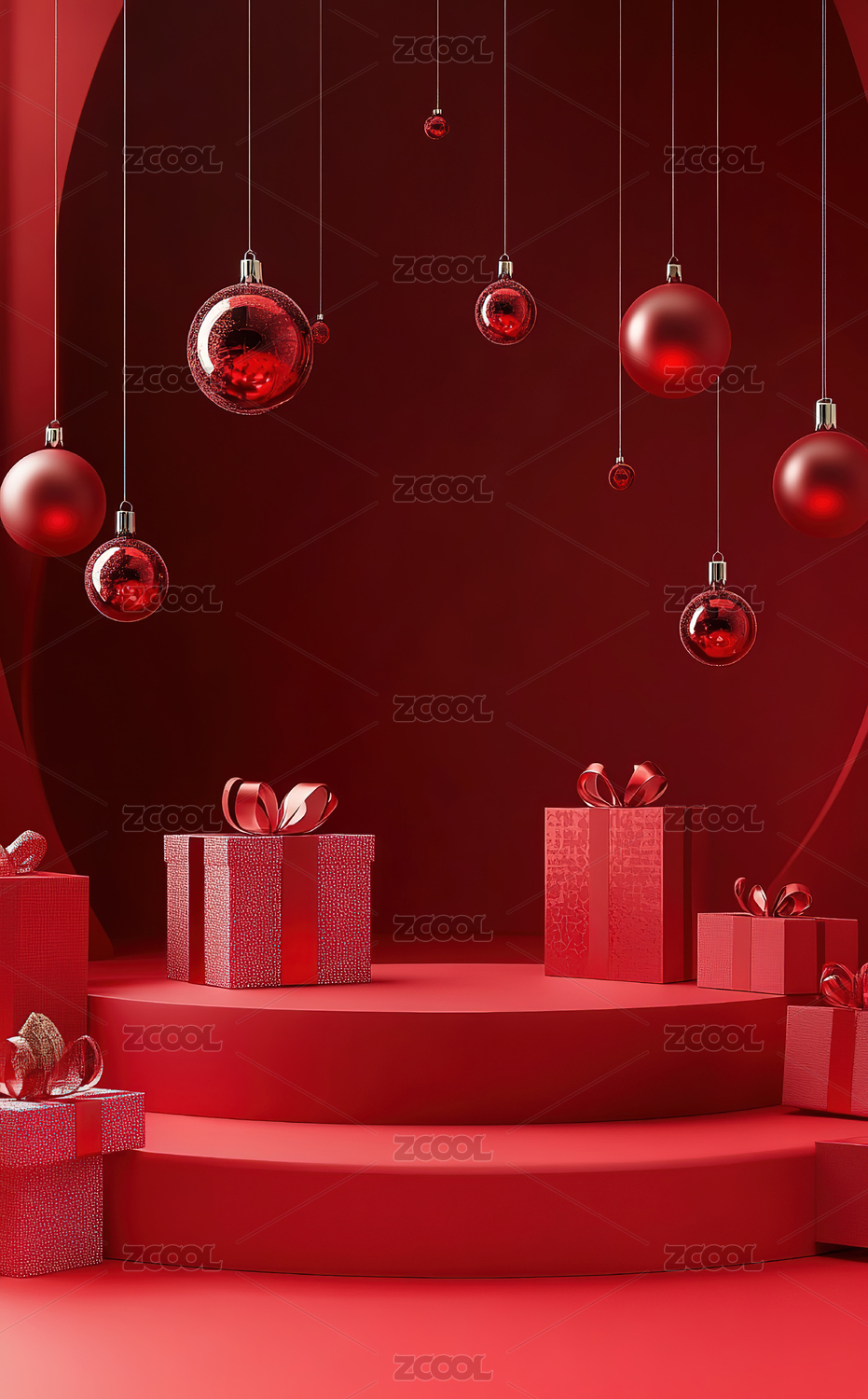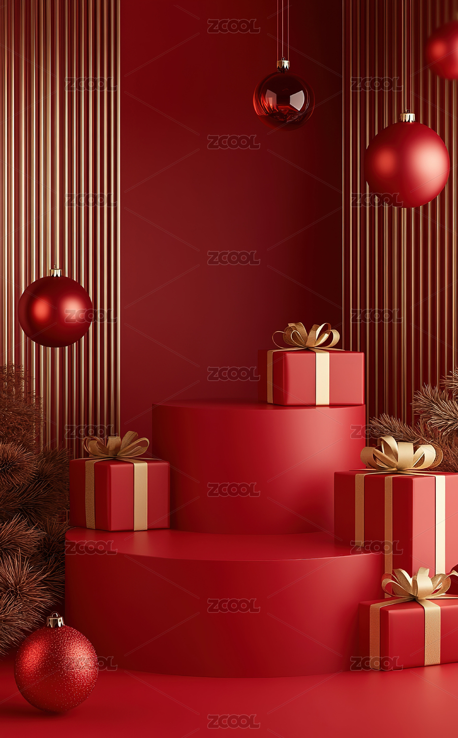 AIGCTP2024,新年,圣诞节,购物,场景,红色,金色,纸质,简约,发光
