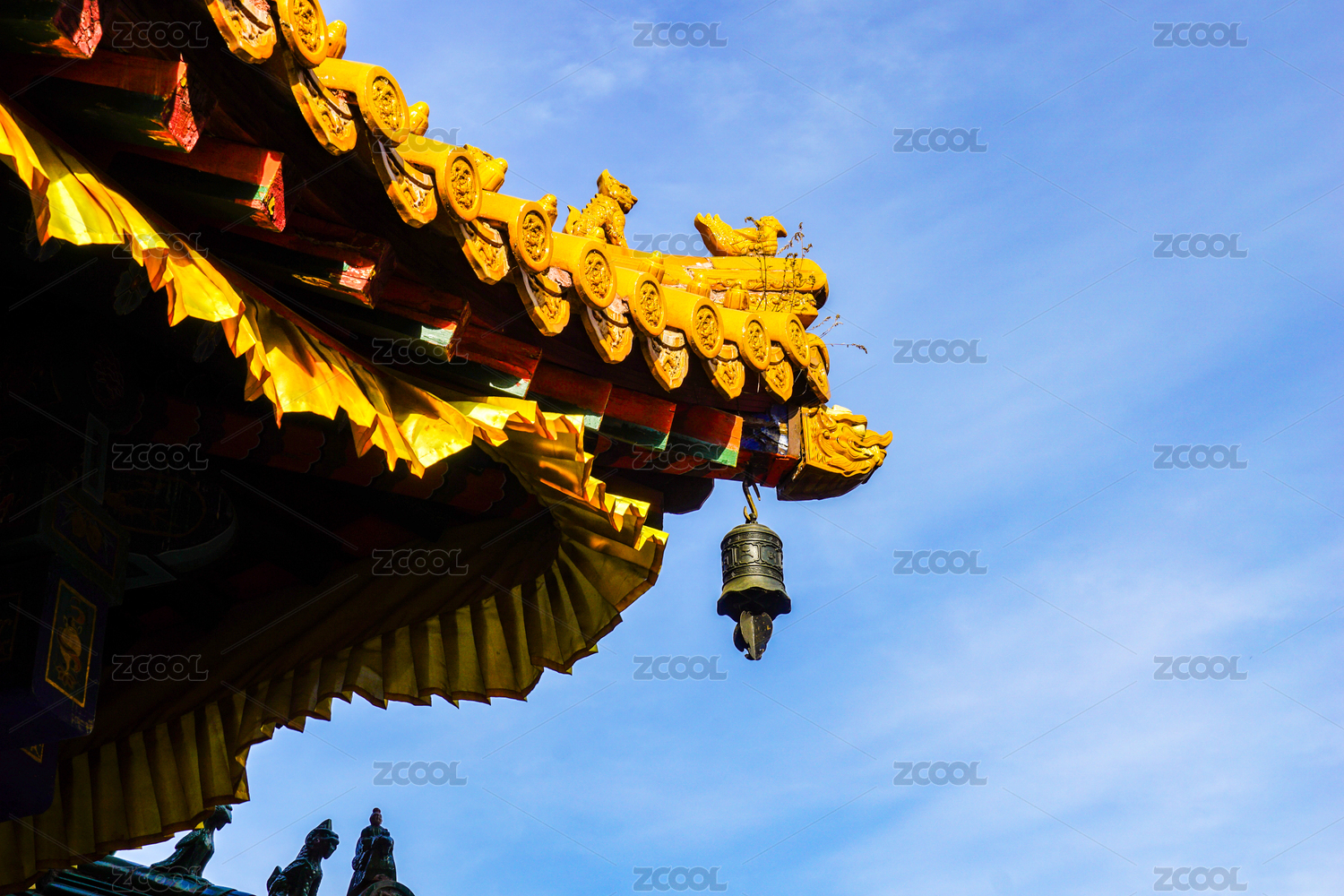 四川绵阳平武县报恩寺的寺庙檐角与铃铛