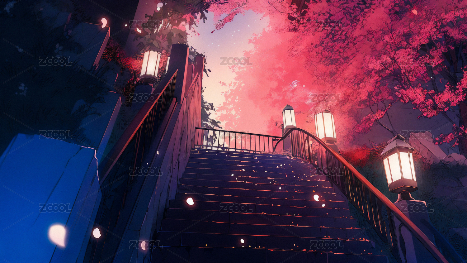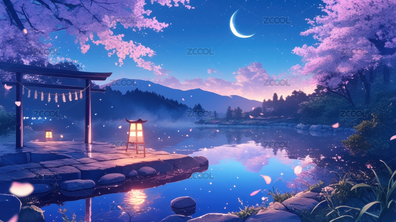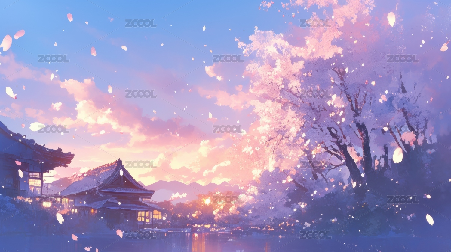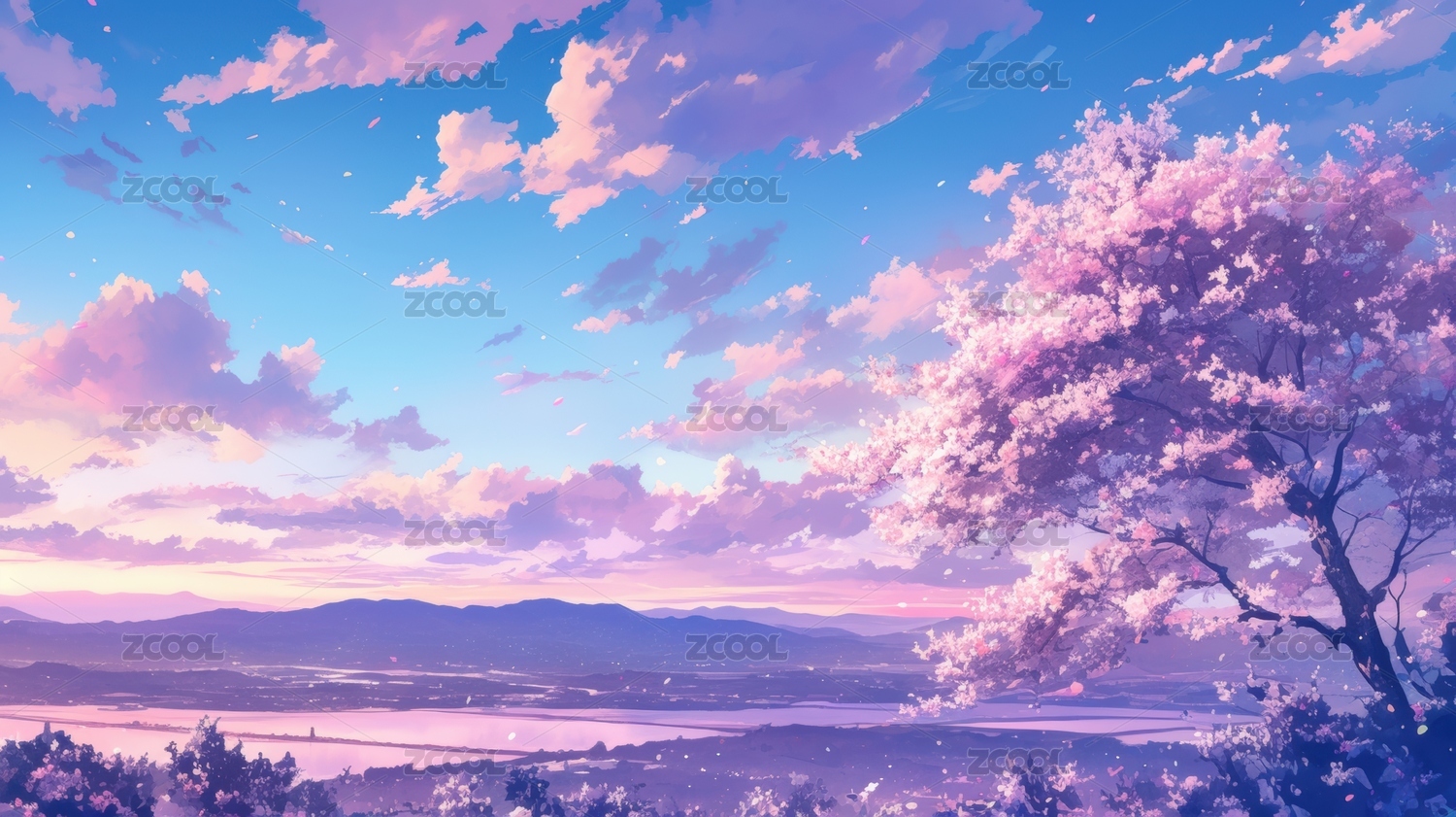 夏天傍晚自然清新治愈唯美卡通漫画AI数字
