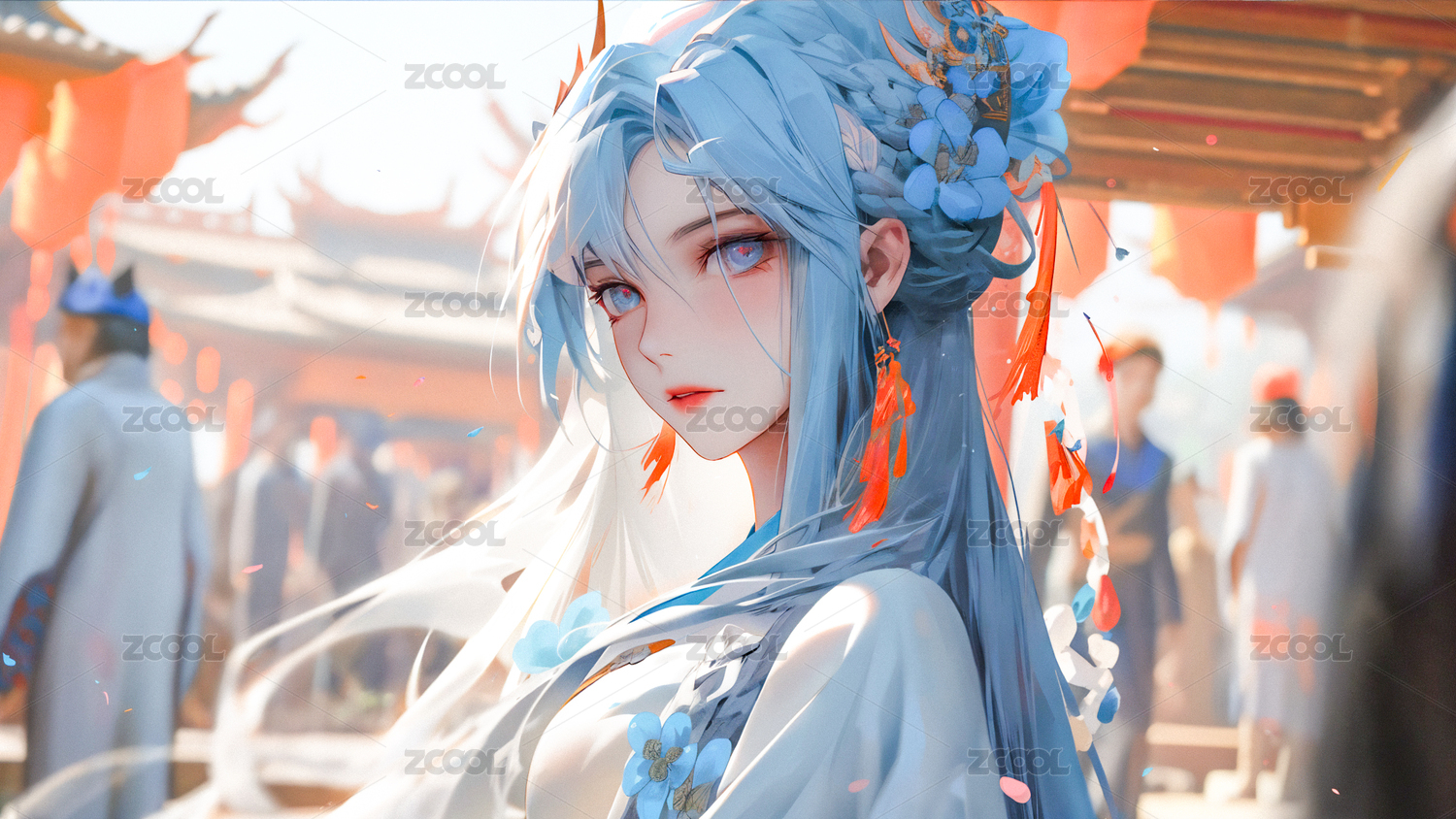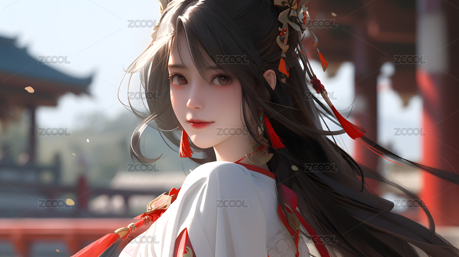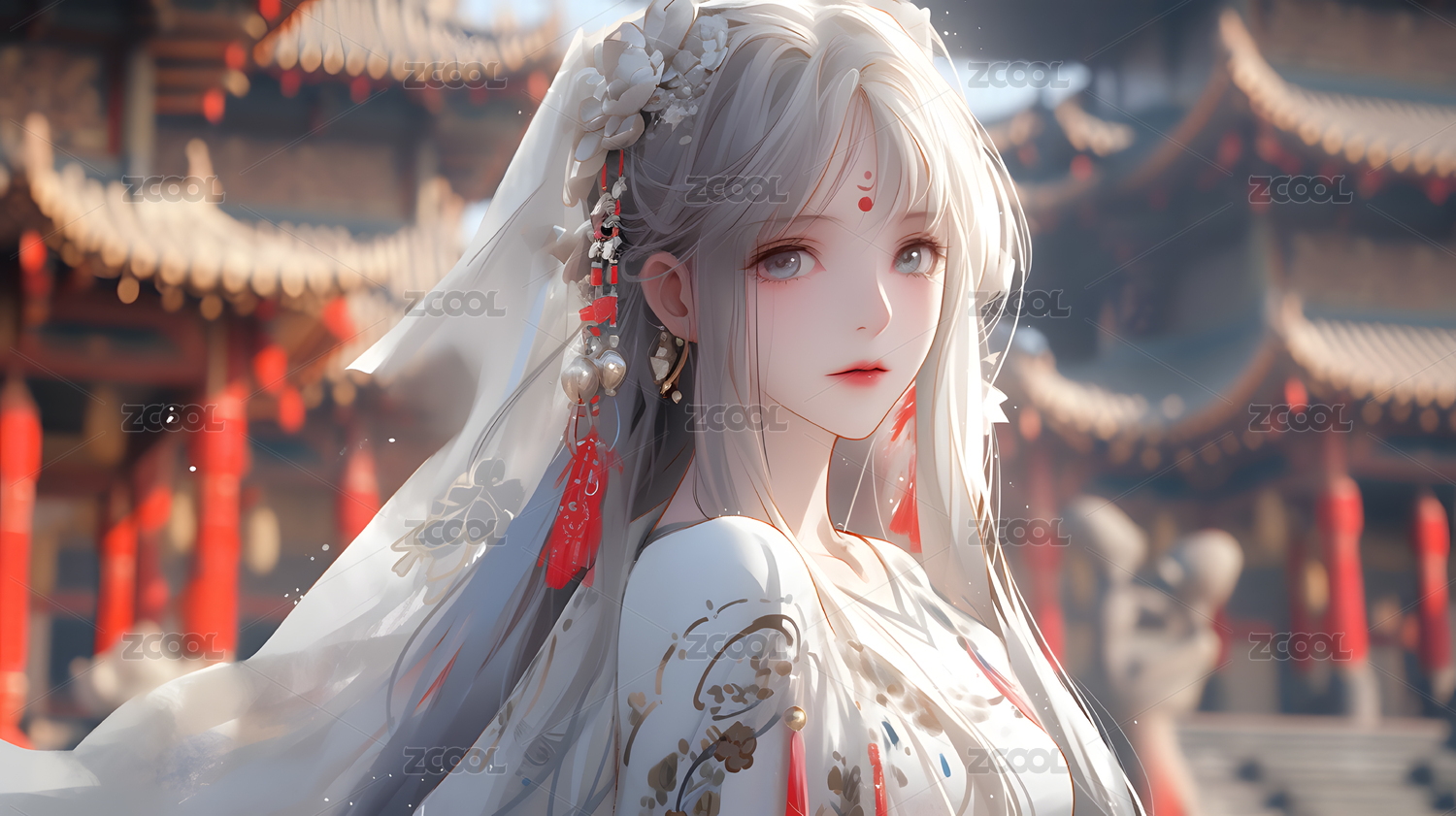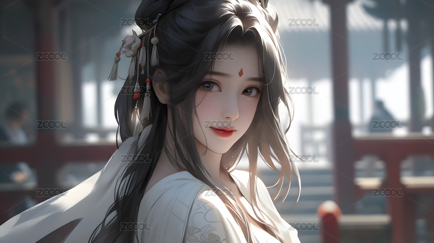 女性,人像,女孩,二次元,古风,柔美,台阶,古人,石柱