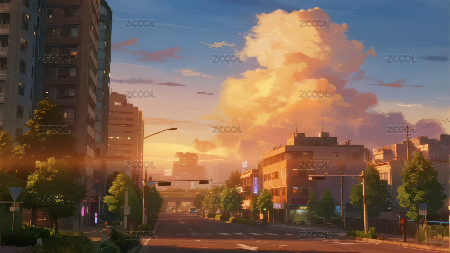漫画氛围感傍晚街道场景