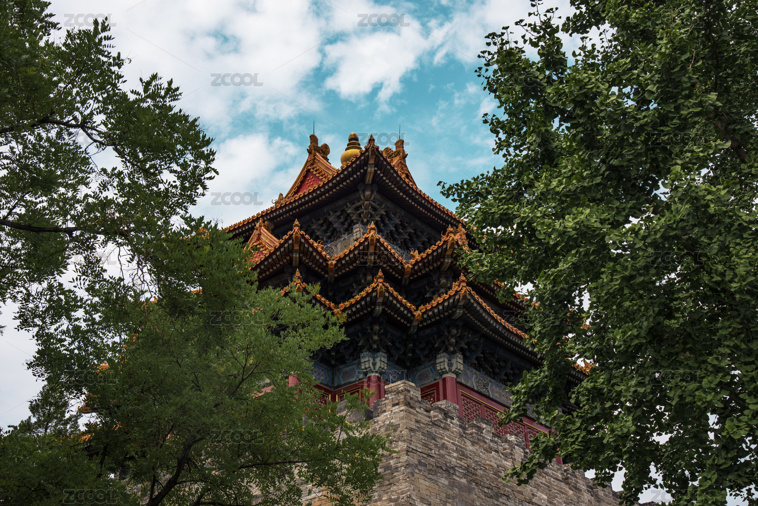 中国北京颐和园皇家古建一角——琉璃瓦瑞兽斗拱彩绘描金