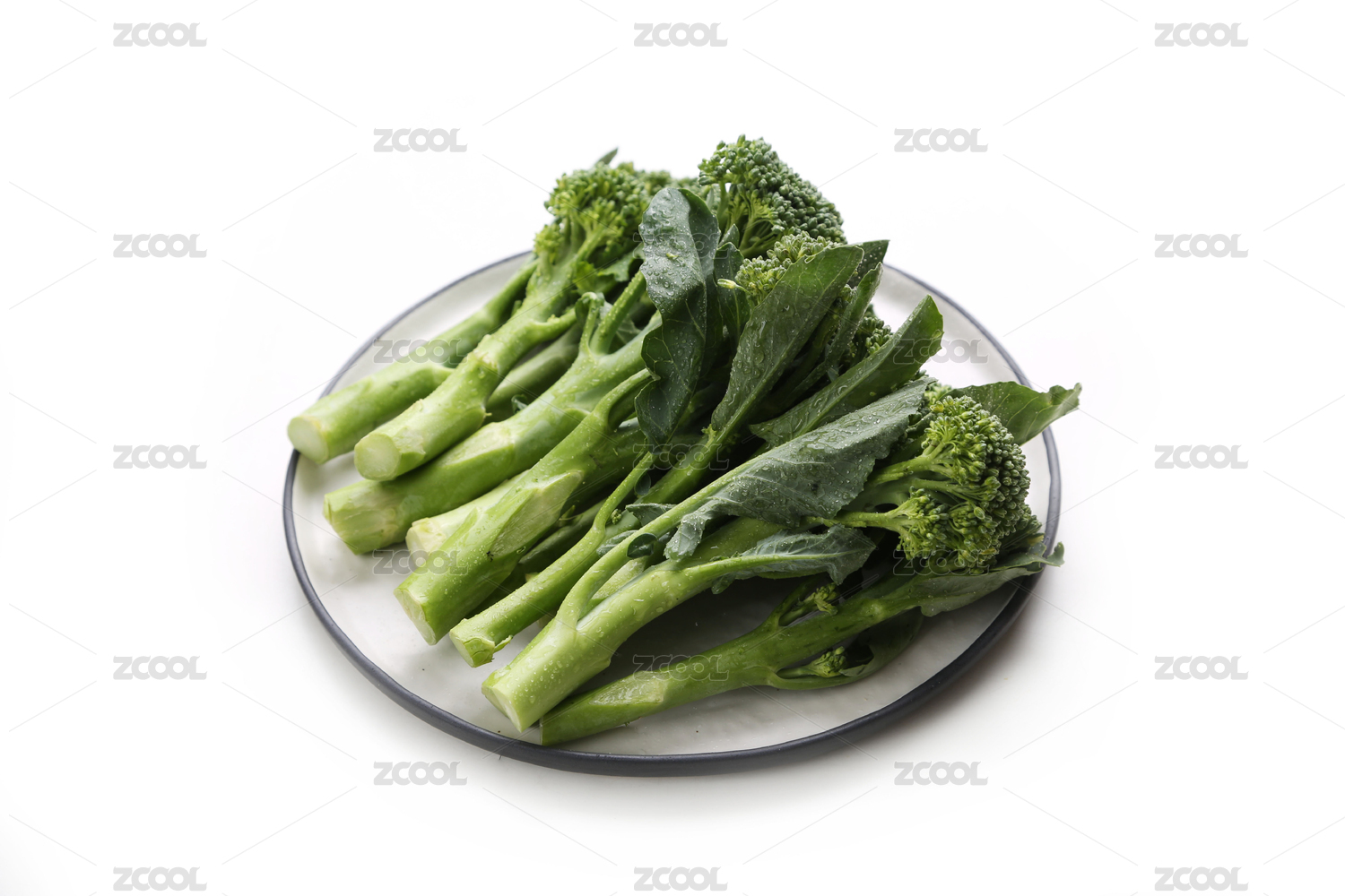 白背景上一碟的绿色素菜炒芥蓝菜心
