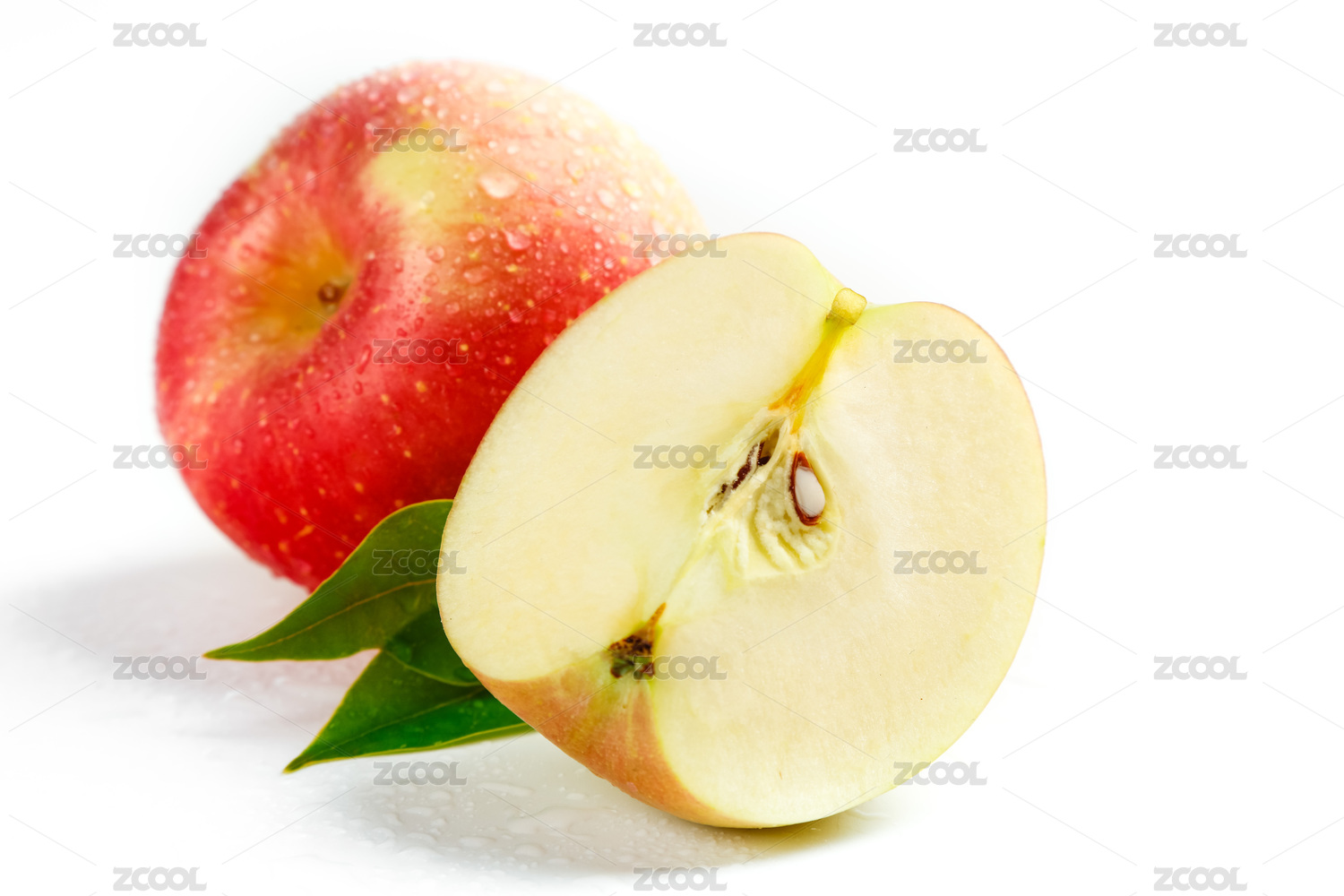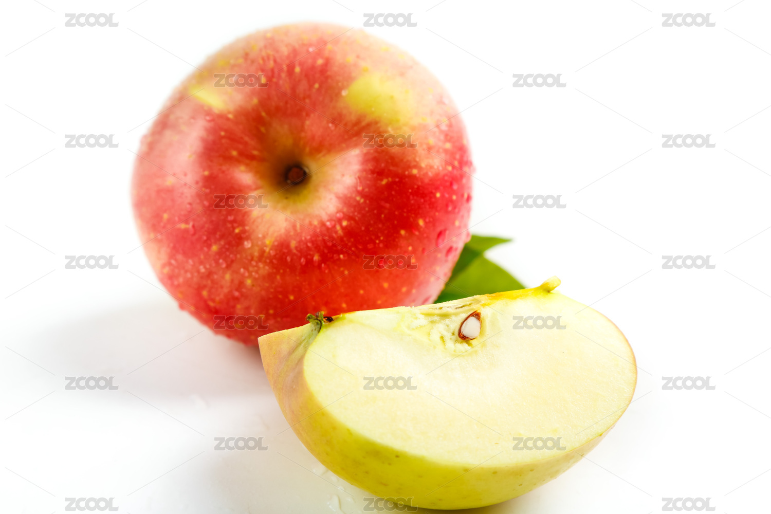 白底上放着切开的红苹果