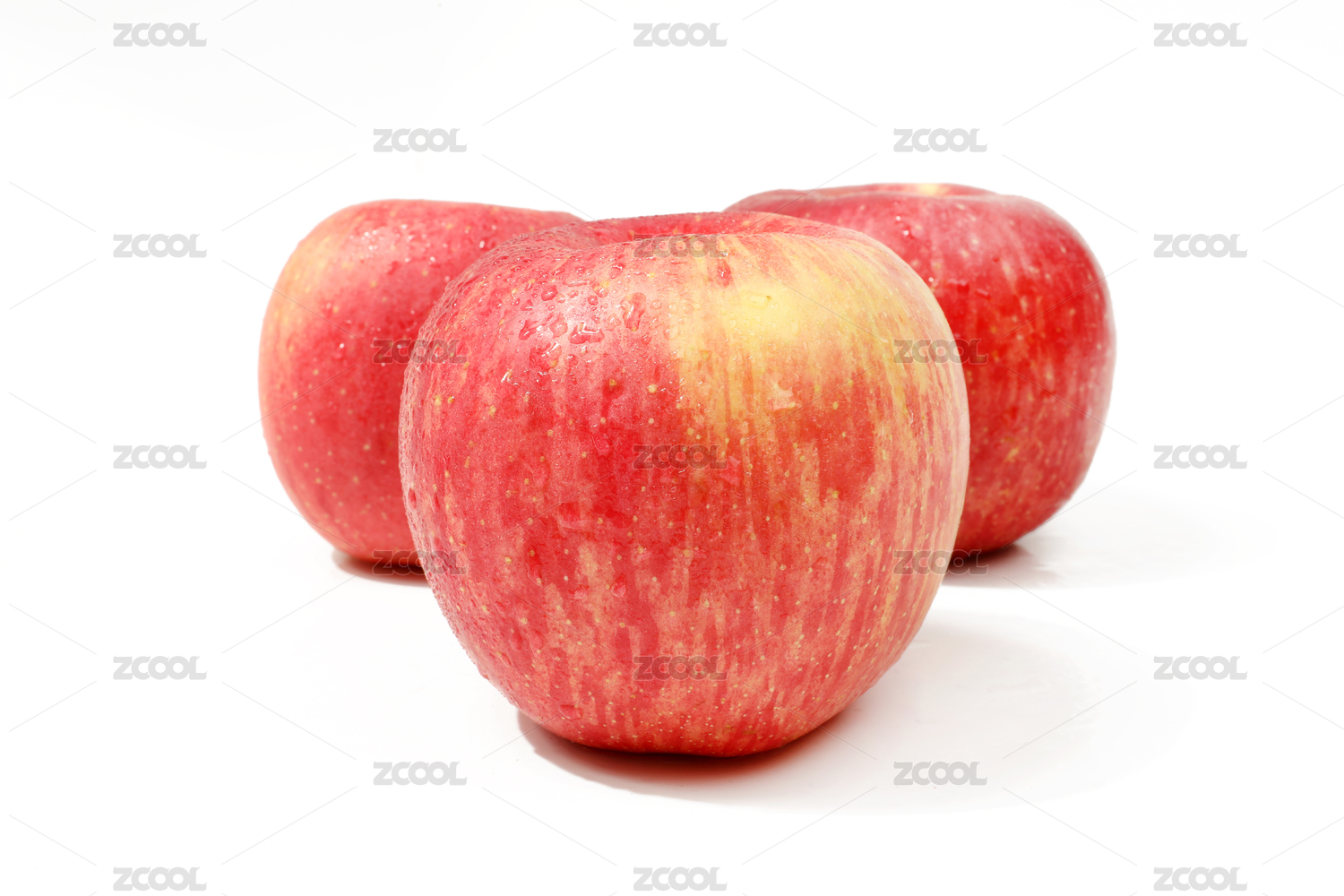 白色背景上摆放着的新鲜的红富士苹果