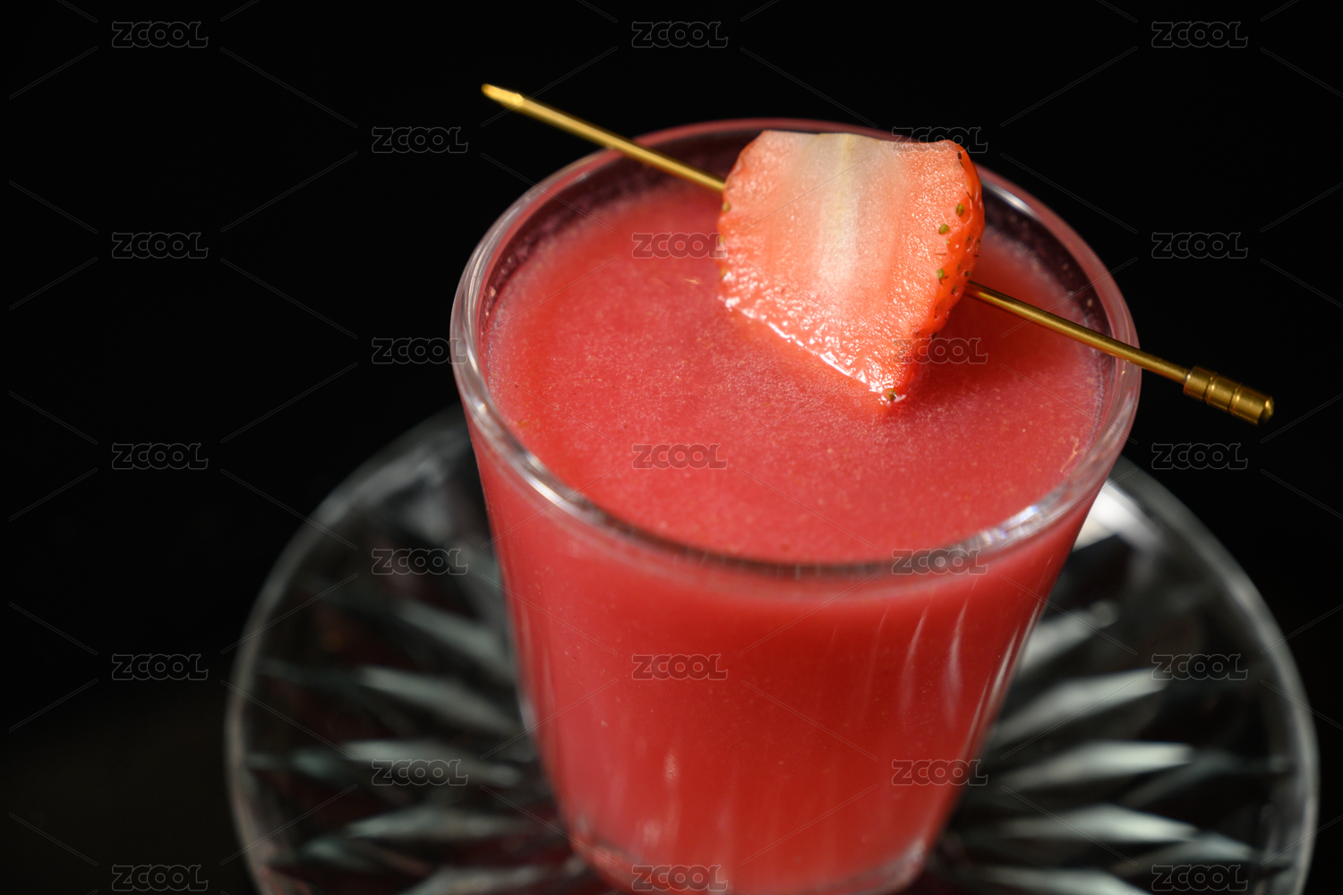 放在深色背景上杯子里的鲜榨草莓果汁