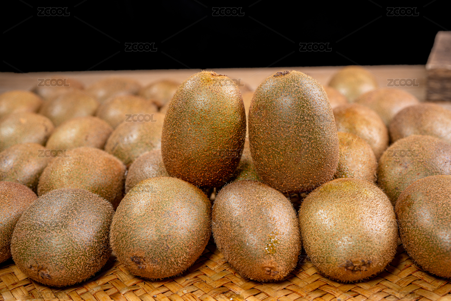 黑底上放着二个徐香猕猴桃