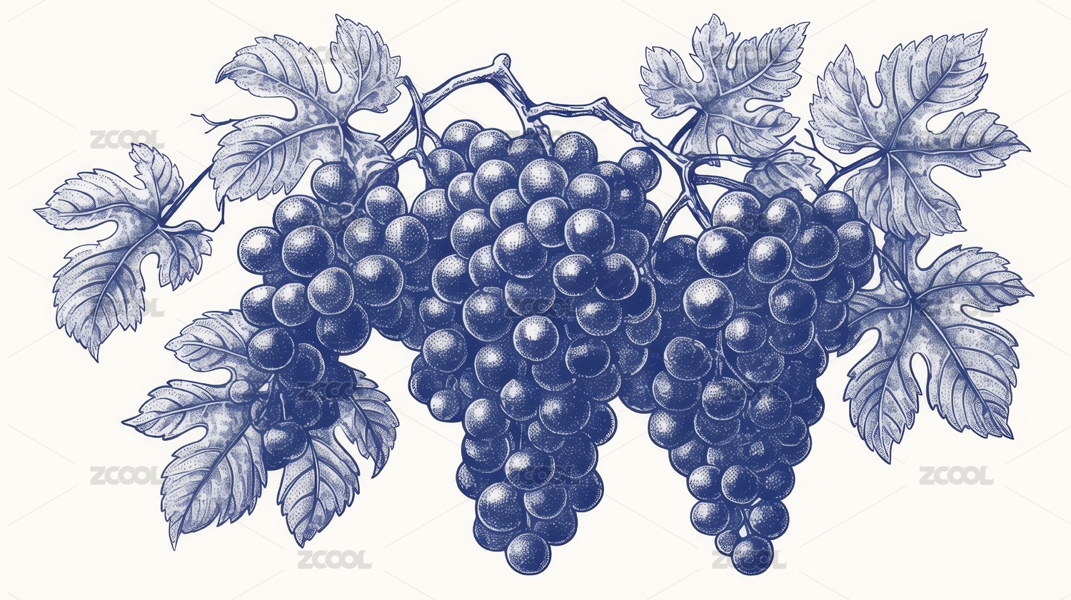 葡萄串的蓝墨水插画