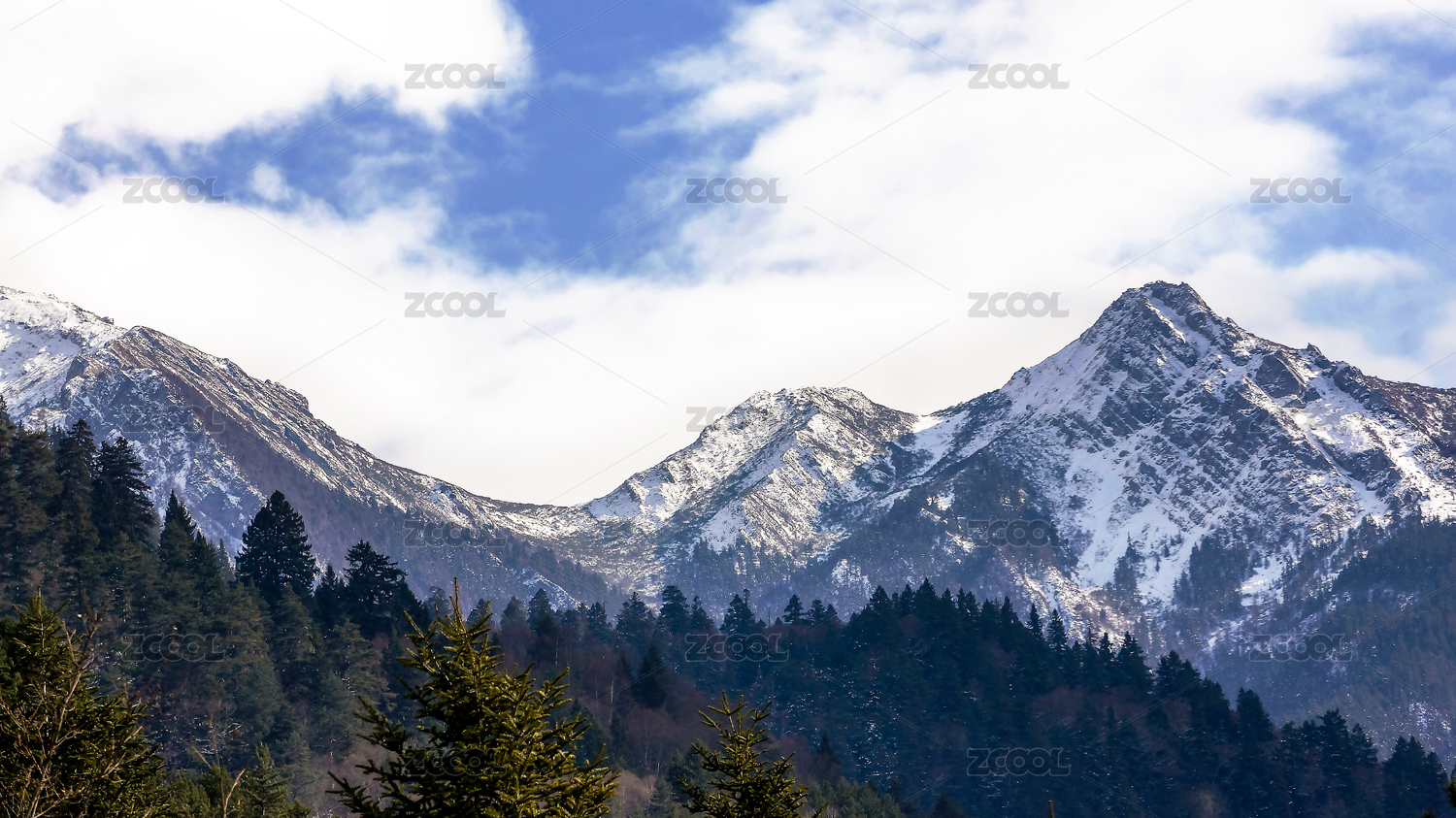 中国西藏林芝鲁朗扎西岗村远望加拉白垒雪山