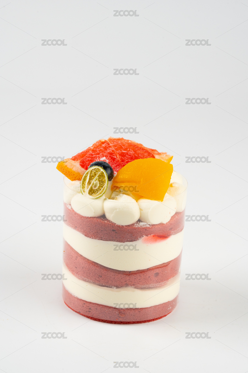 在白色背景上放着的奶油蛋糕
