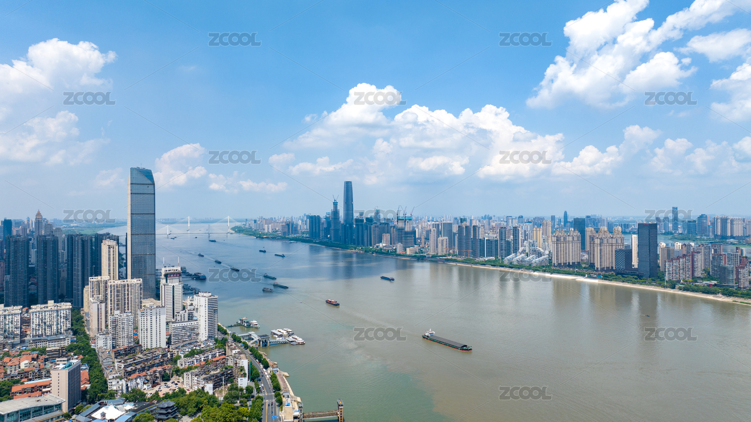 湖北武汉长江航运与长江两岸高楼