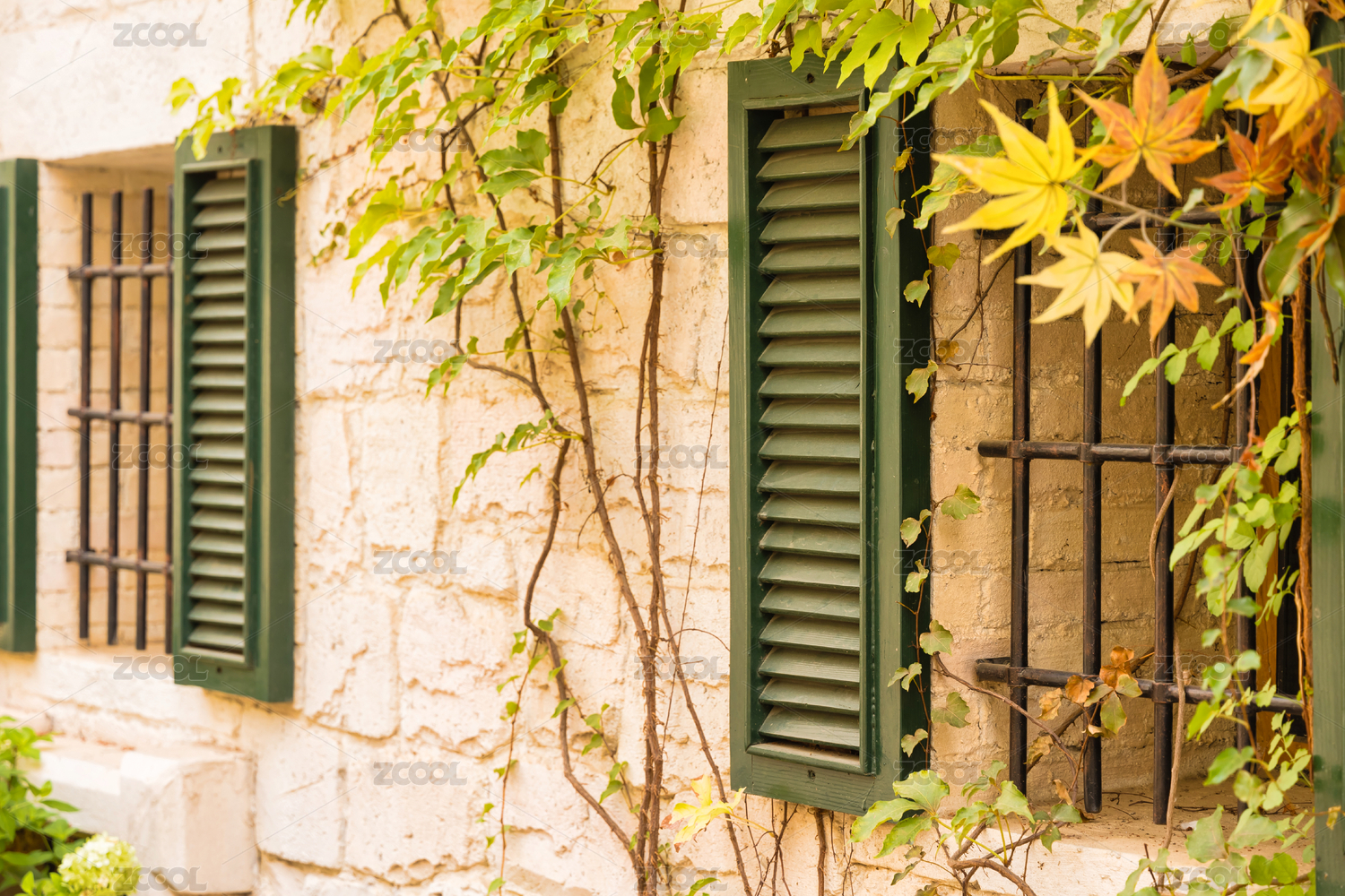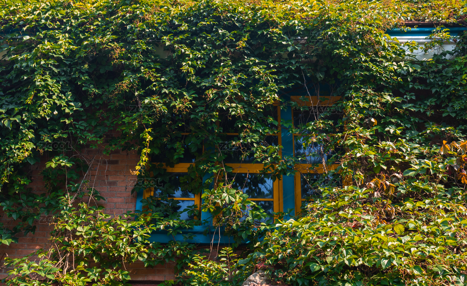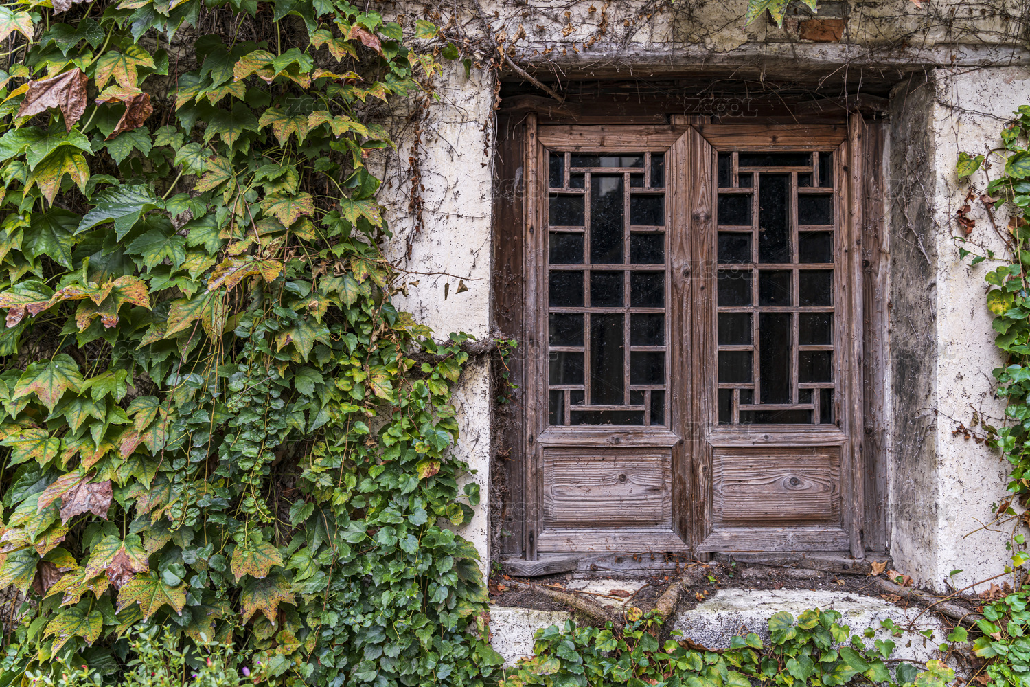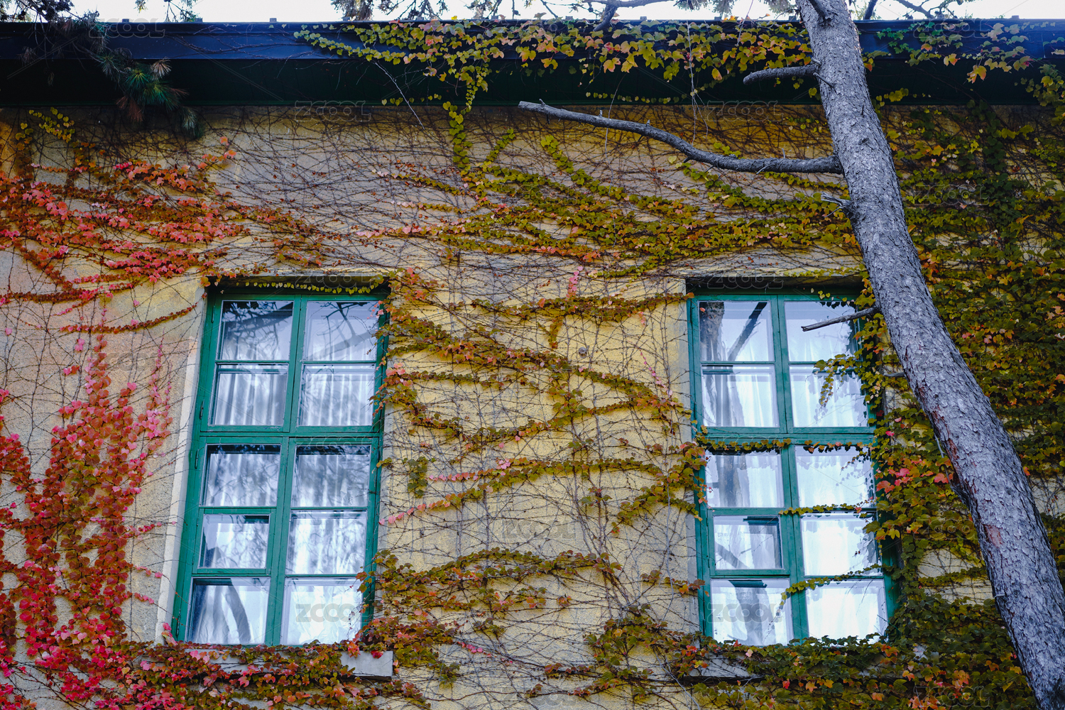 坊茨小镇德式老建筑爬山虎墙面窗台