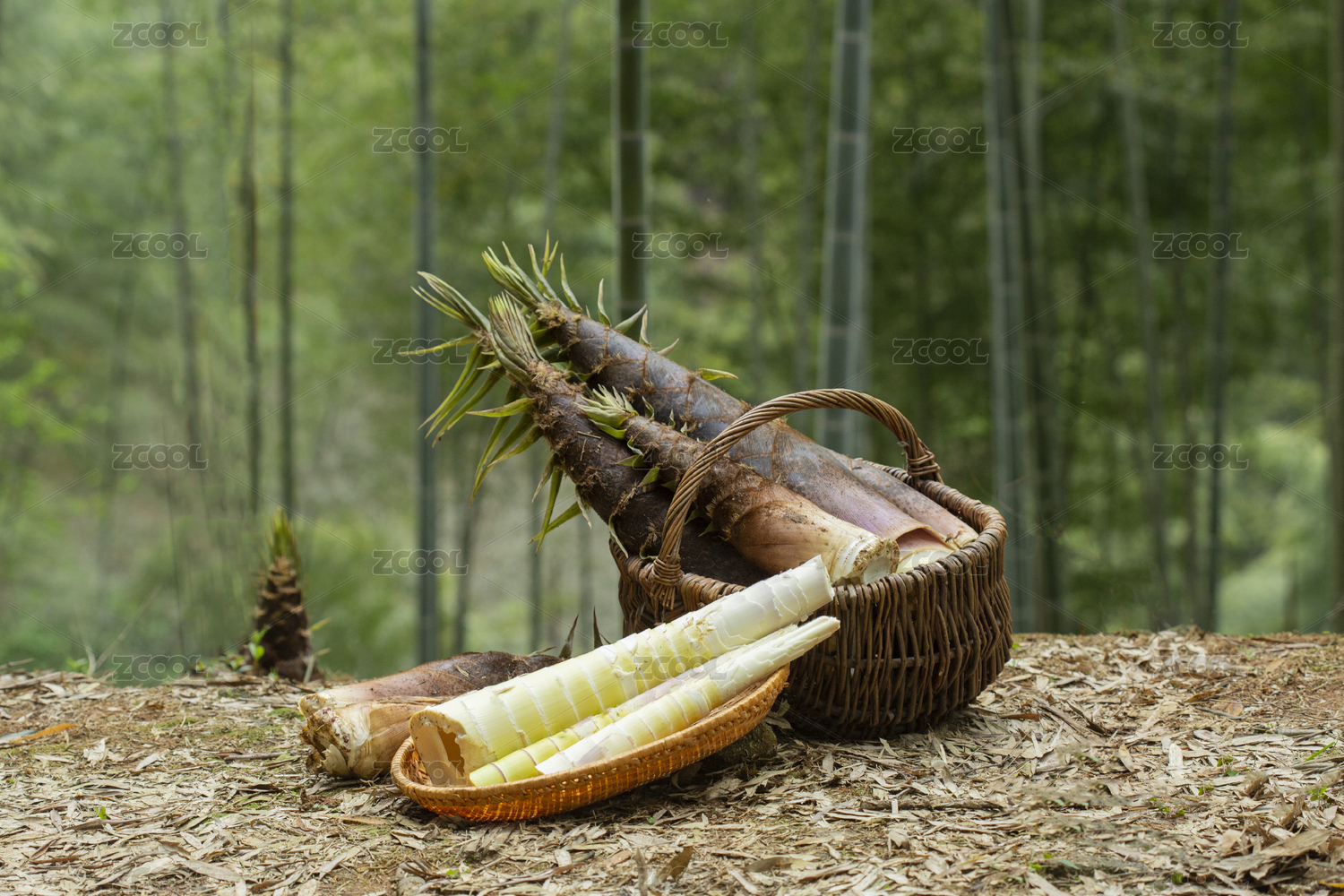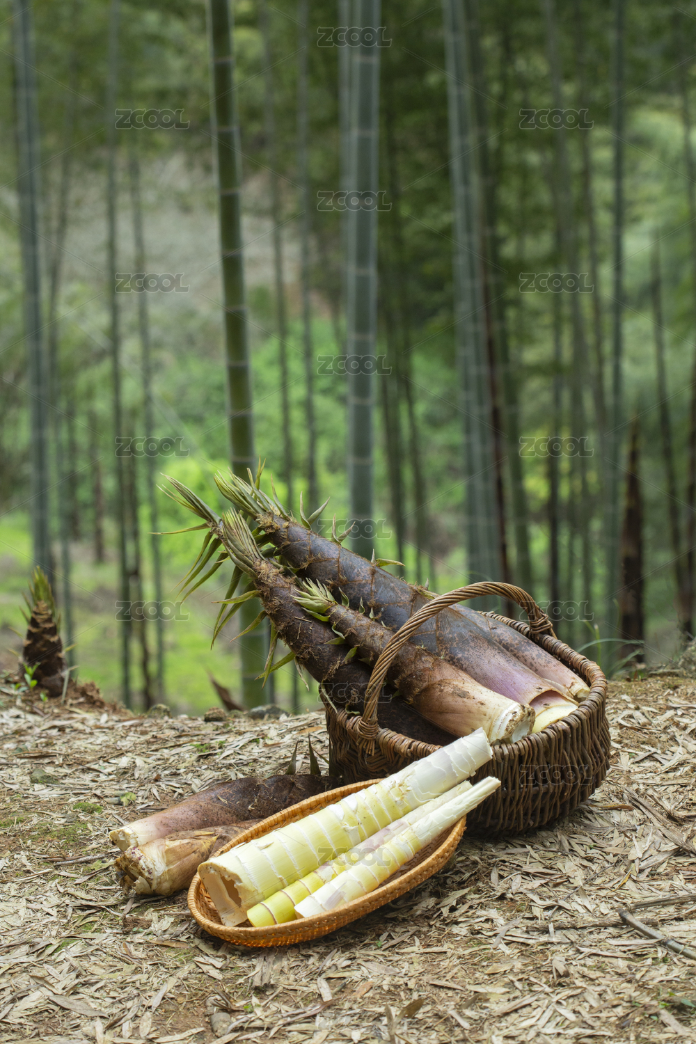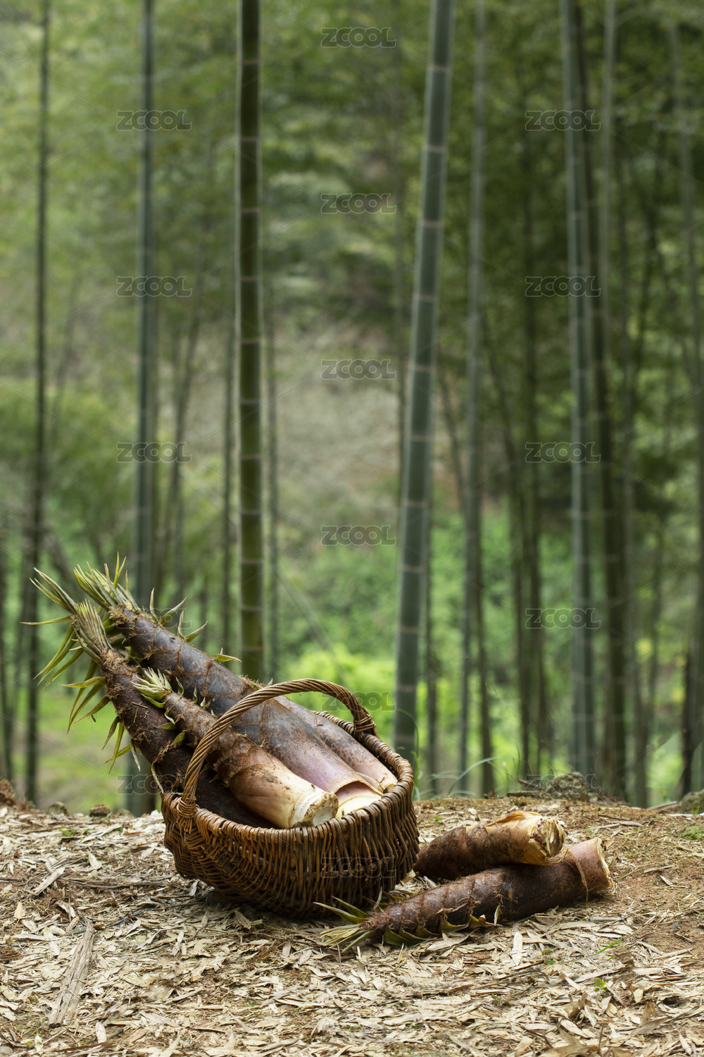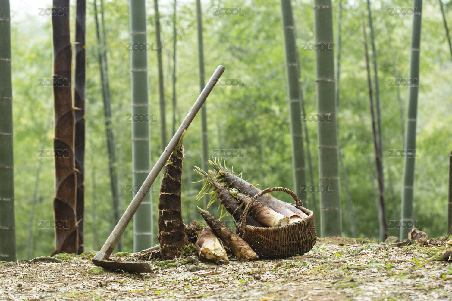 春天竹林一篮春笋竹笋挖笋