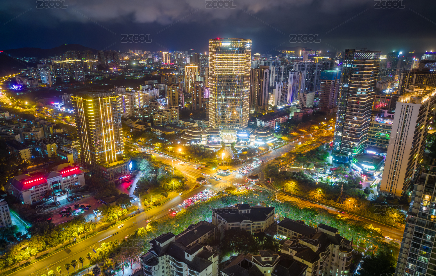 海南,三亚,城市夜景,自贸港,吉阳区,建筑,城市,灯光,街道,繁华