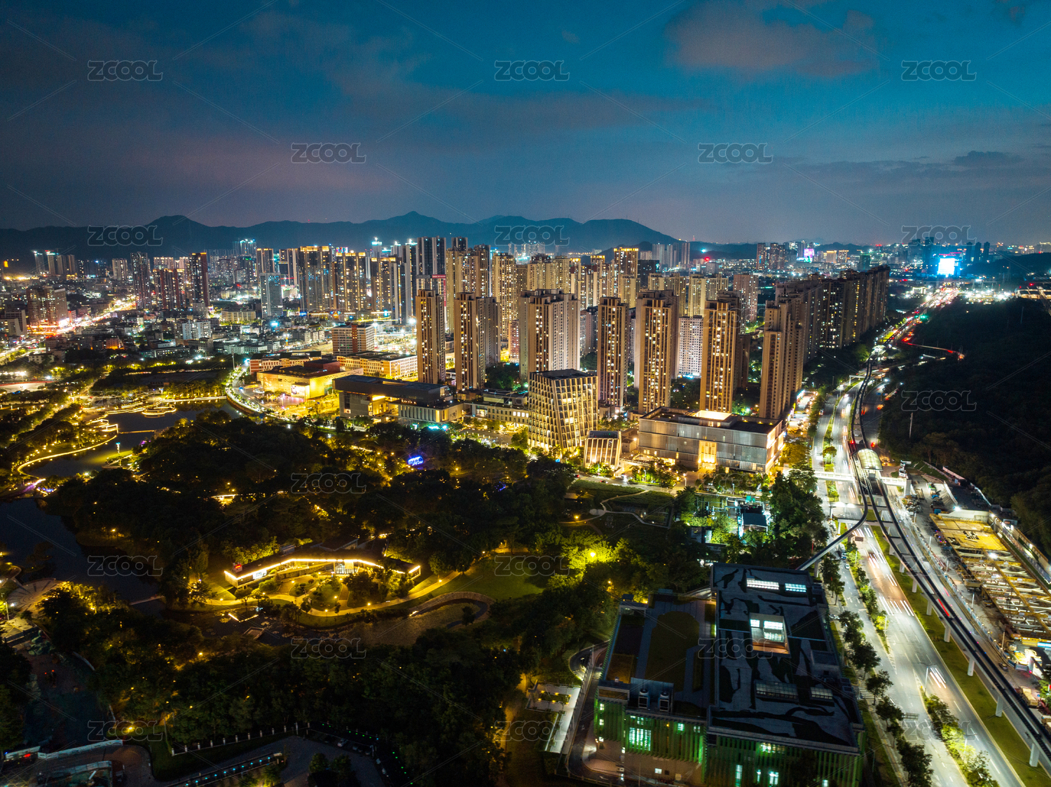 中国深圳龙岗区平湖金融基地城市建筑夜景
