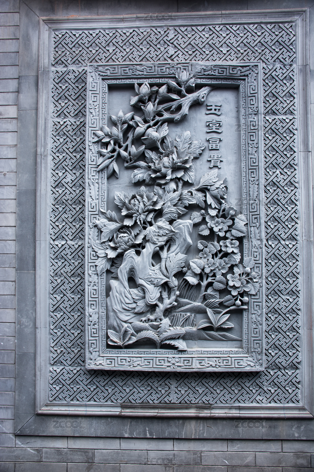 山西省晋中市榆次常家庄园花卉纹砖雕照壁墙