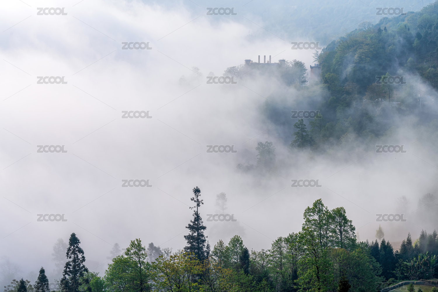 雾霭中的绿色秘境