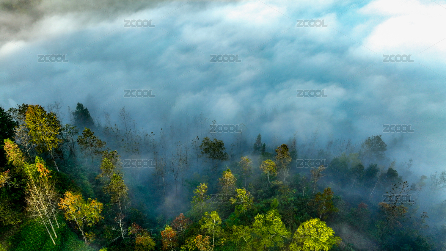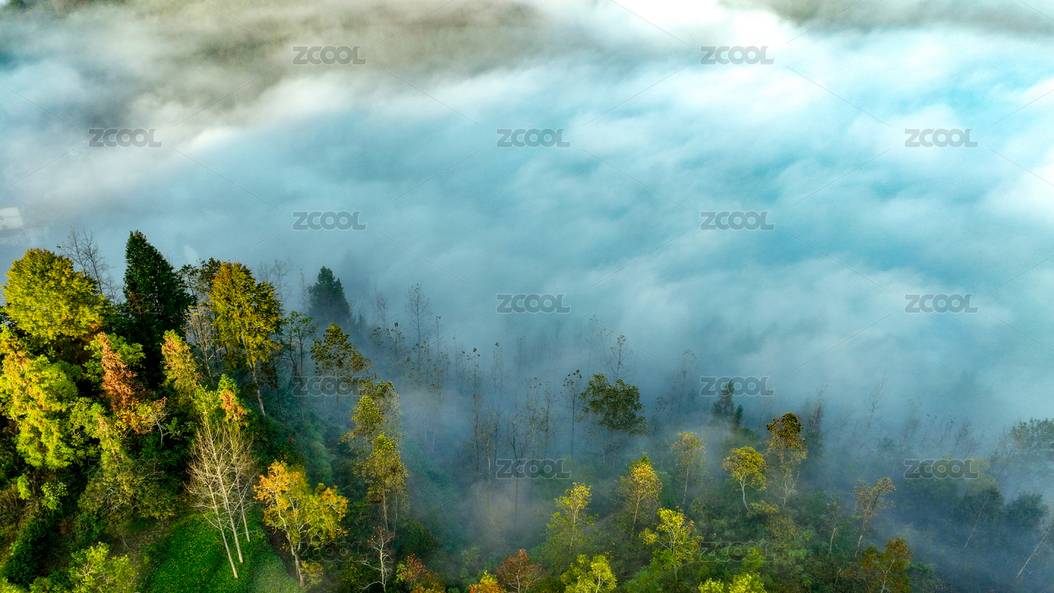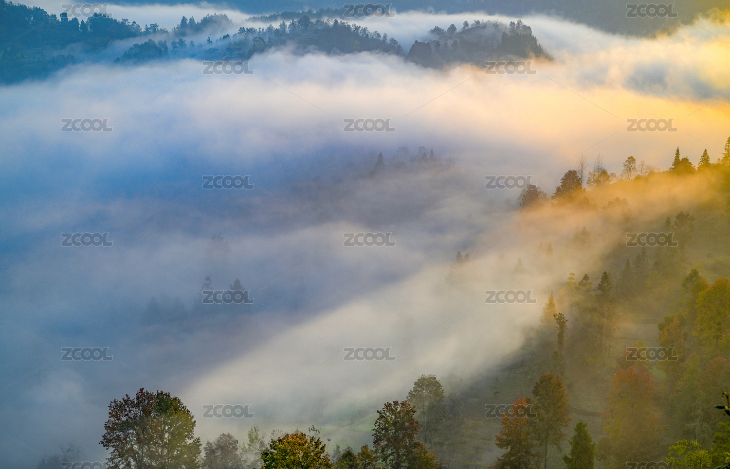 重庆酉阳雾绕彩林伴冬阳