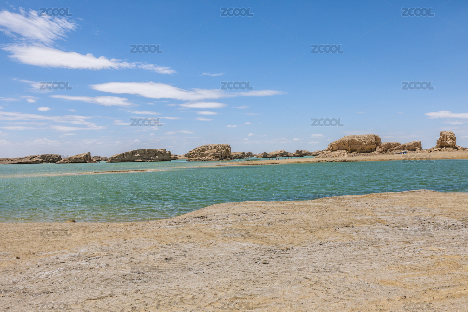 中国新疆罗布人村寨蓝天胡杨林塔里木河