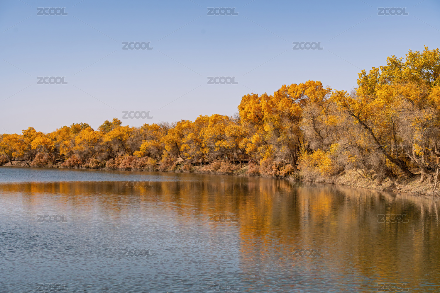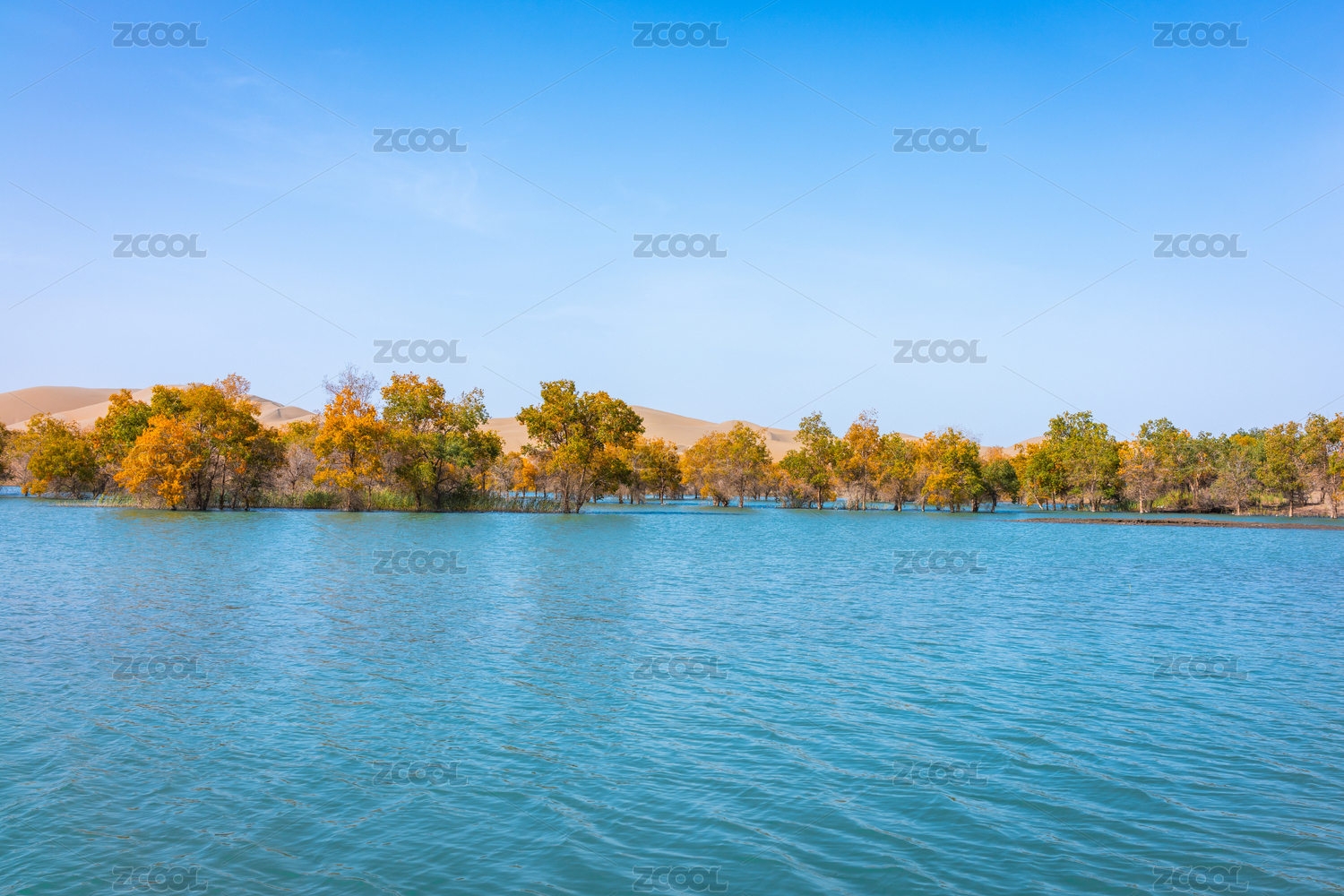 内蒙额济纳旗秋天沙漠湖边胡杨风光
