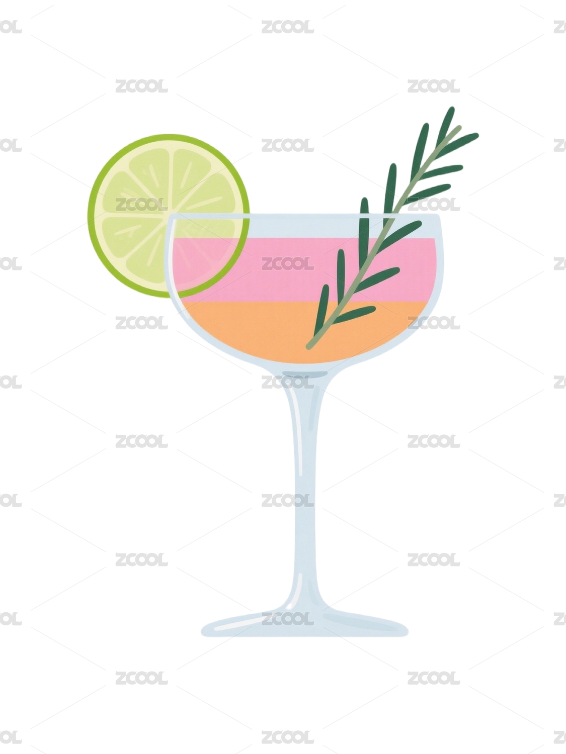 黑底透明玻璃杯中的水果饮料插画背景素材