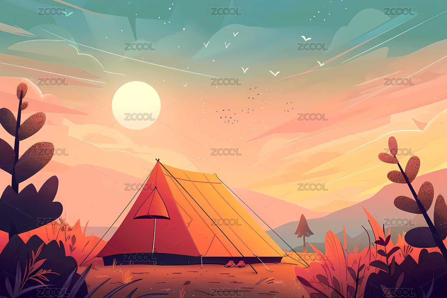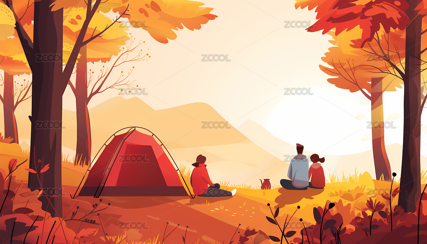 秋天秋游立秋秋分户外活动运动卡通漫画插画