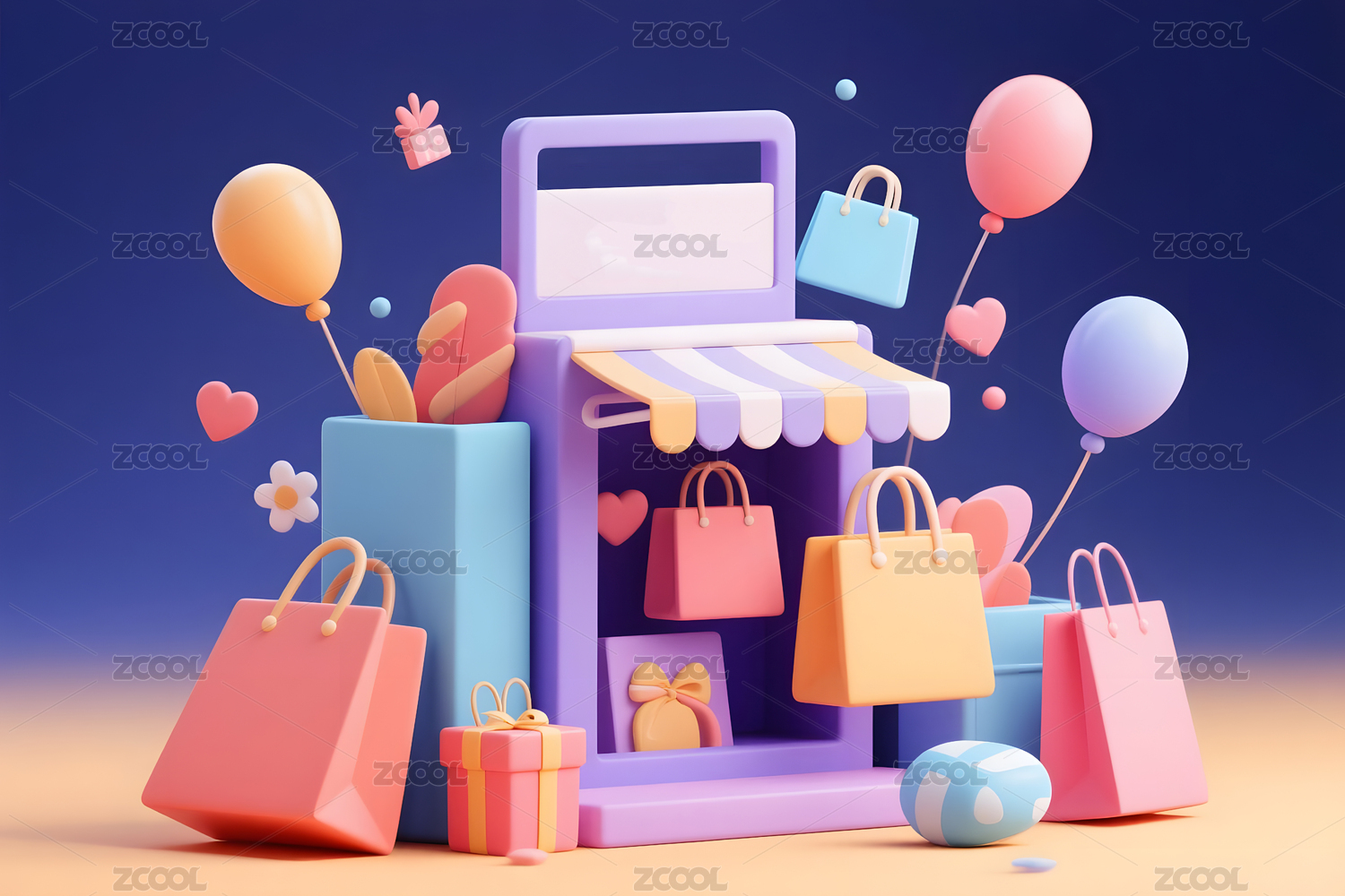 购物主题创意插画3D渲染