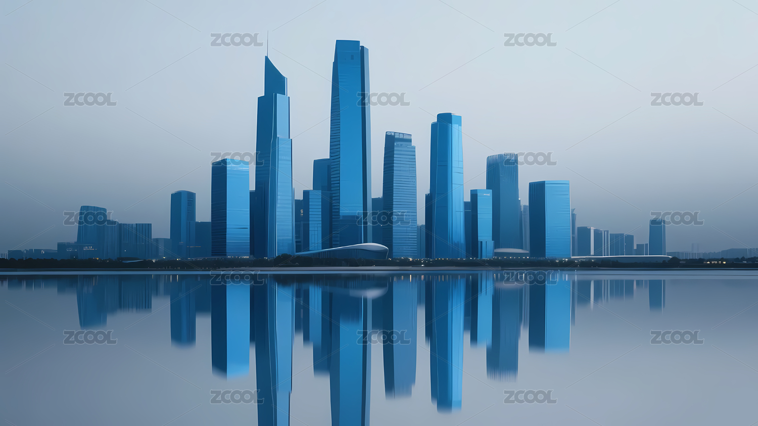 3D渲染,白色,背景,城市,创意,倒影,干净,光影,湖,幻想