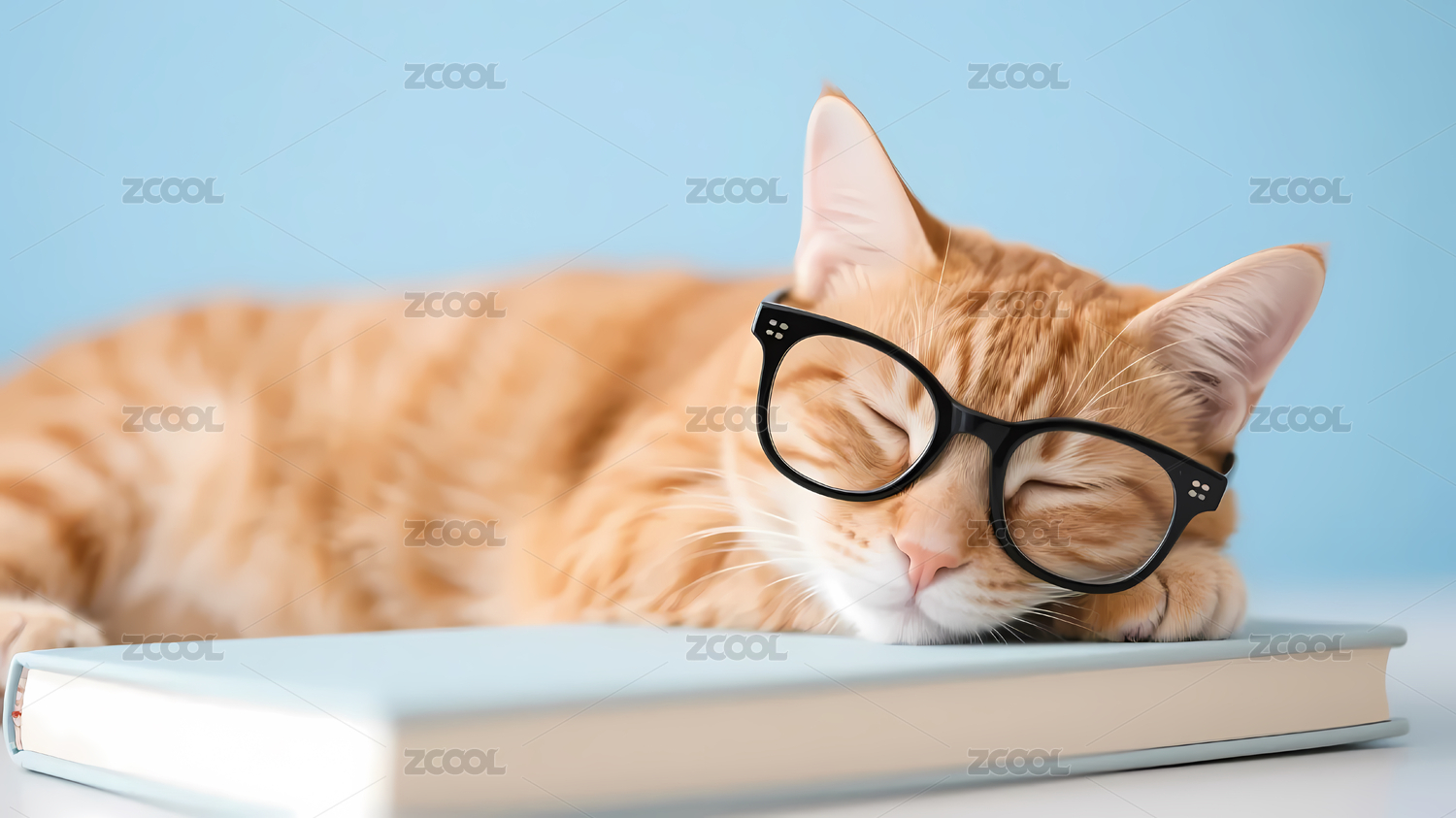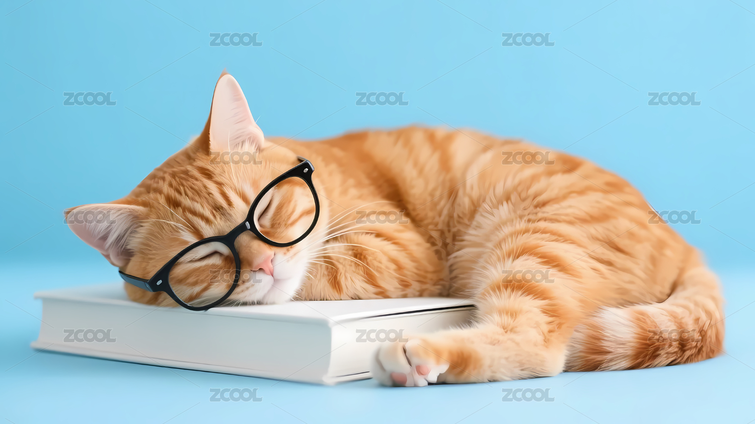 戴眼镜橙色猫咪书上