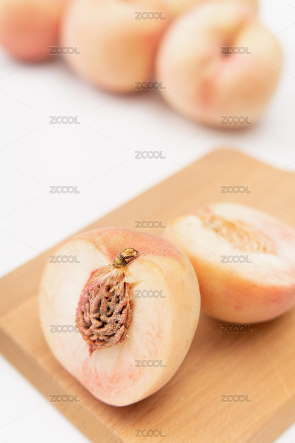 白色桌面上的桃子