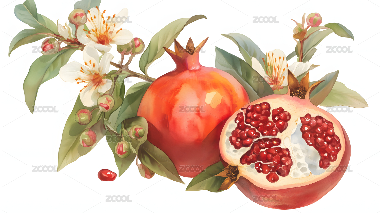 食物,美食,国潮,插画,高清,AIGCFG,中国,特色,石榴