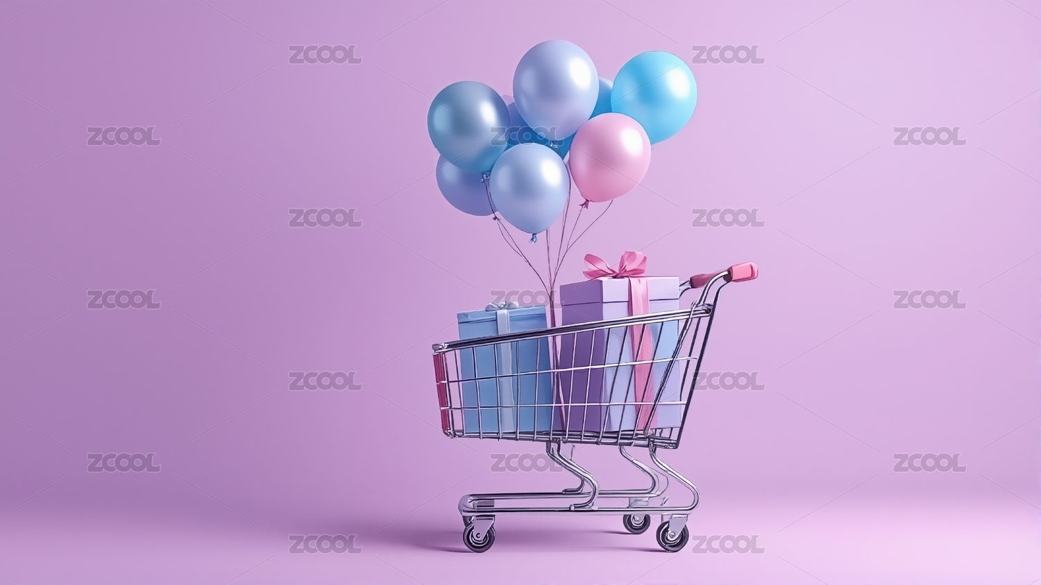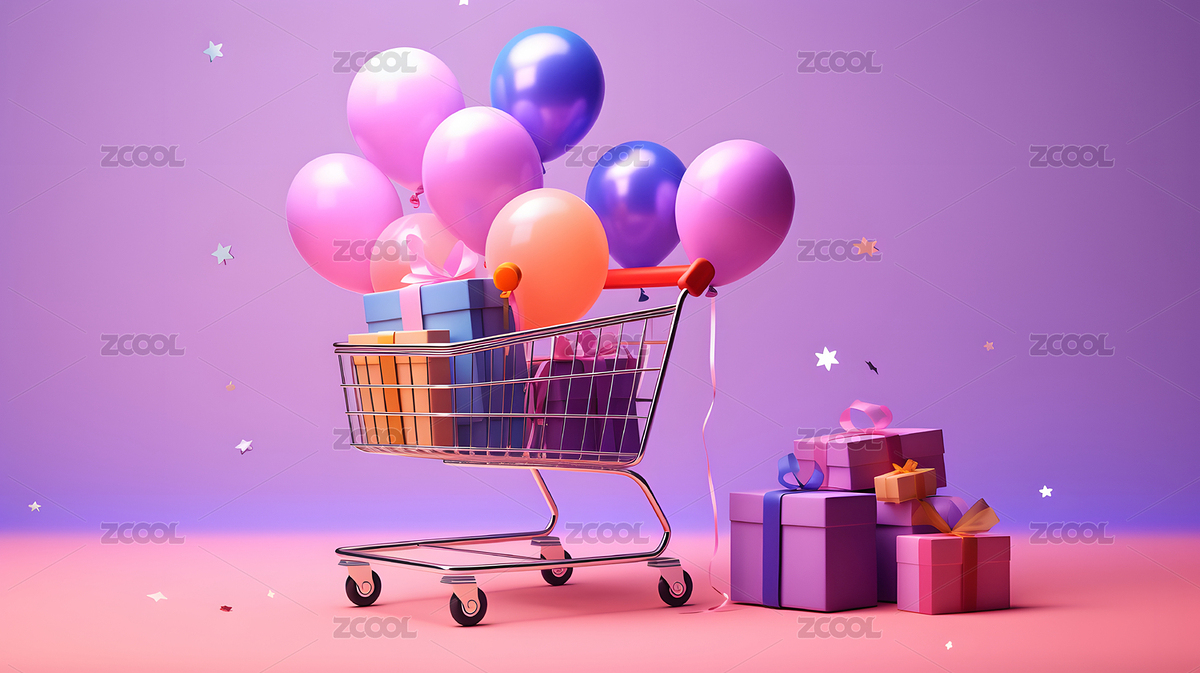 卡通,可爱,节日,福利,购物,购物车,买东西,插画