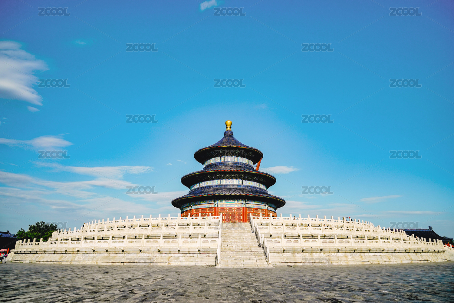 中国北京著名的天坛古建筑群和北京城市风光天际线