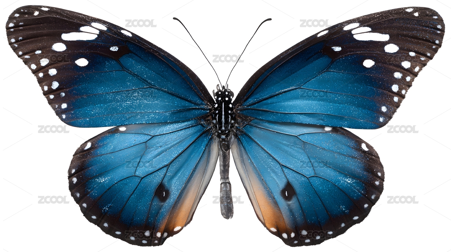 蓝色蝴蝶展开翅膀特写 自然 生机勃勃